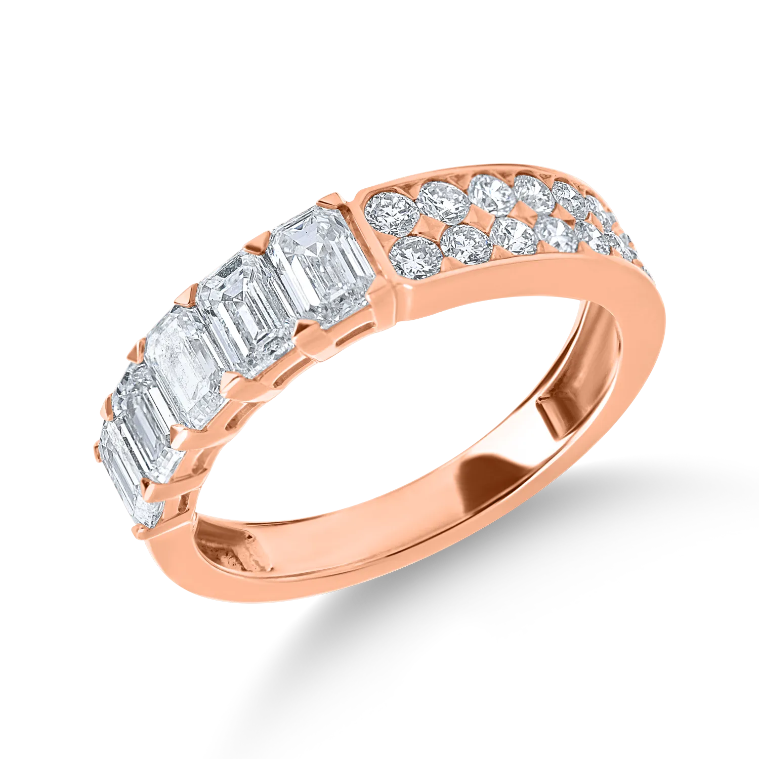 Inel semieternity din aur roz cu diamante emerald si rotunde de 1.6ct