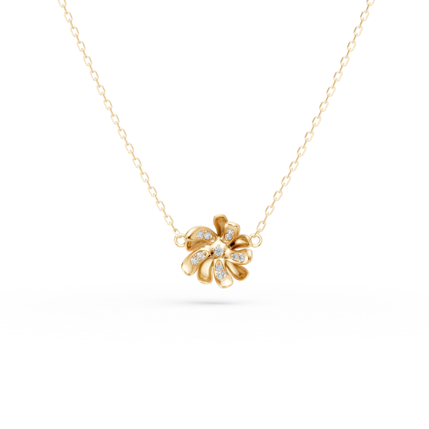 Lant cu padantiv floare din aur galben cu diamante de 0.08ct