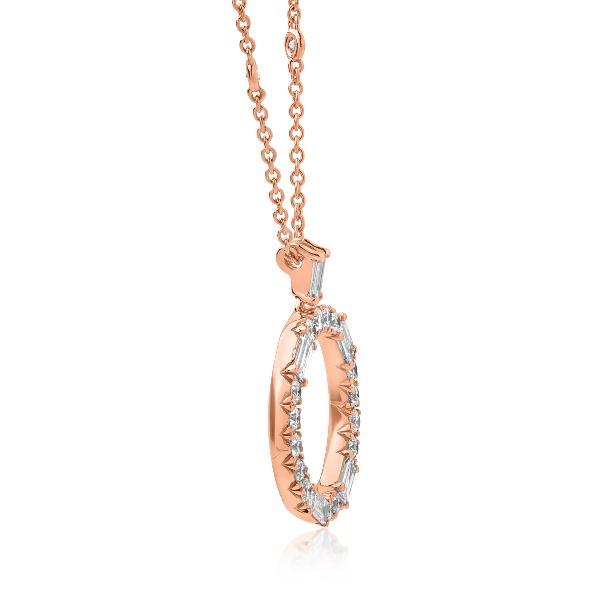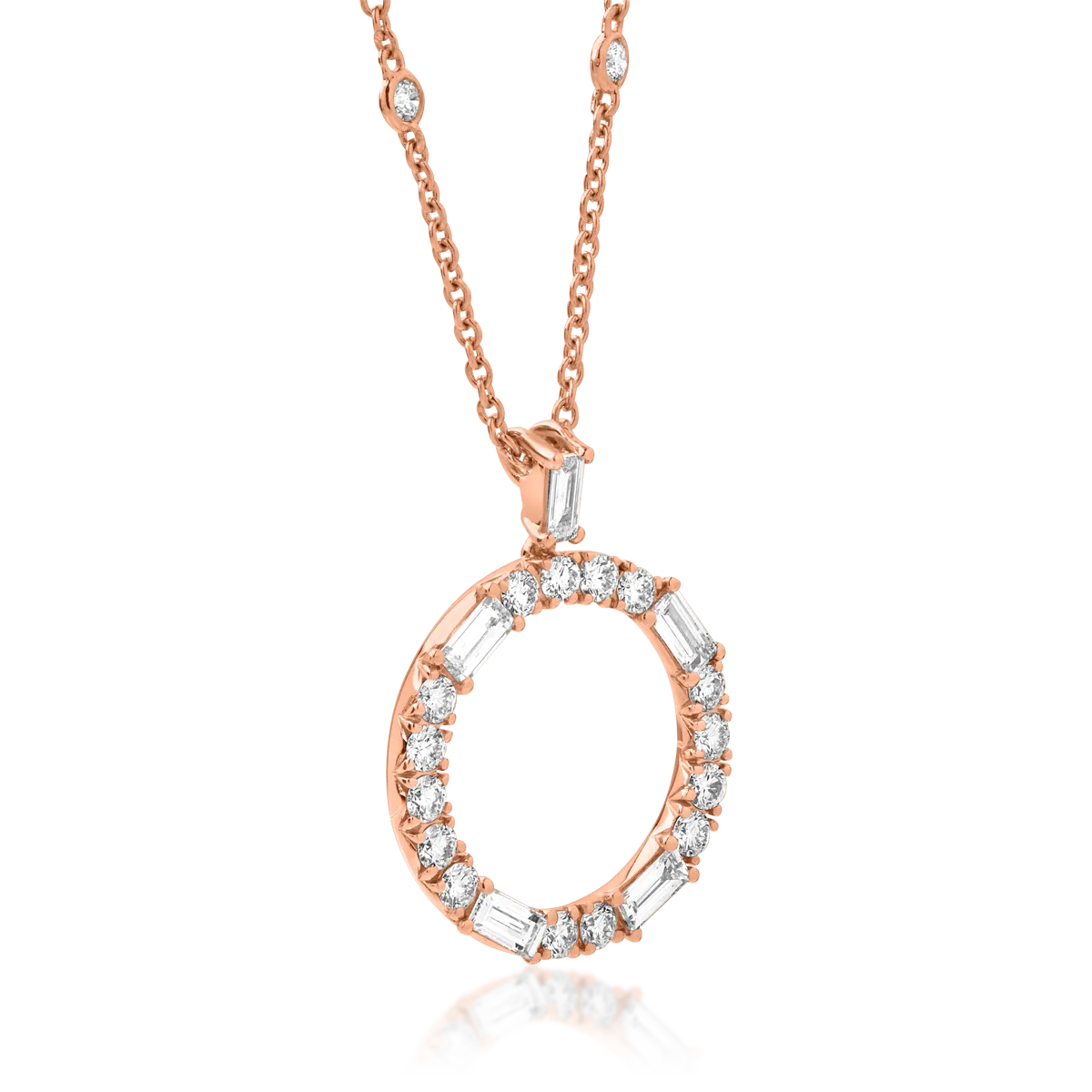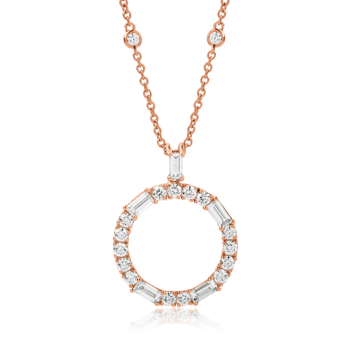 Lant cu pandantiv cerc din aur roz cu diamante baguette si rotunde de 1.38ct