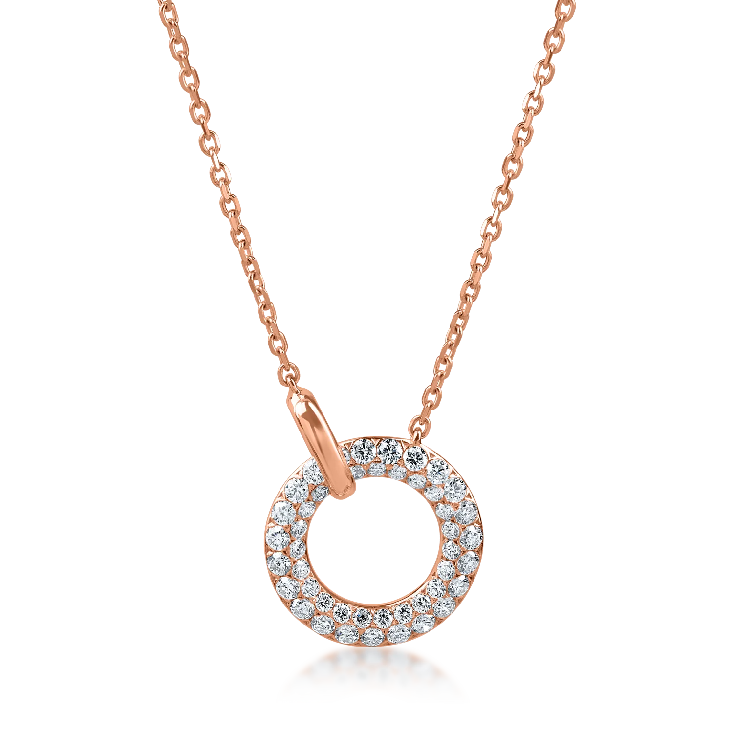 Lant cu pandantiv cerc din aur roz cu diamante de 0.5ct
