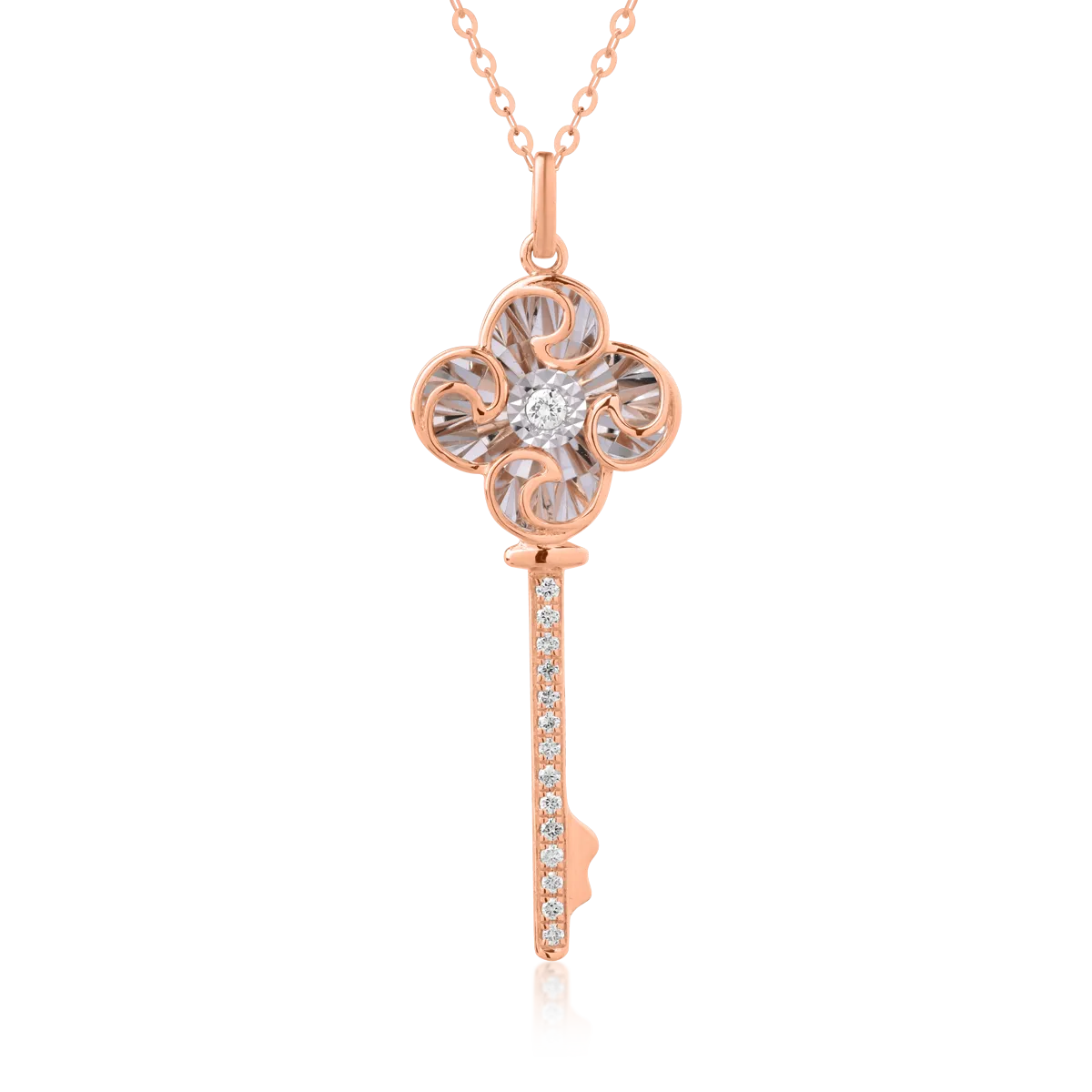 Lant cu pandantiv cheie din aur roz cu diamant de 0.017ct si diamante de 0.047ct