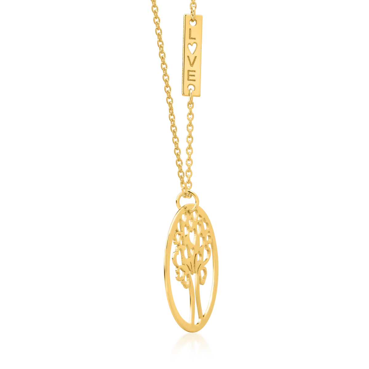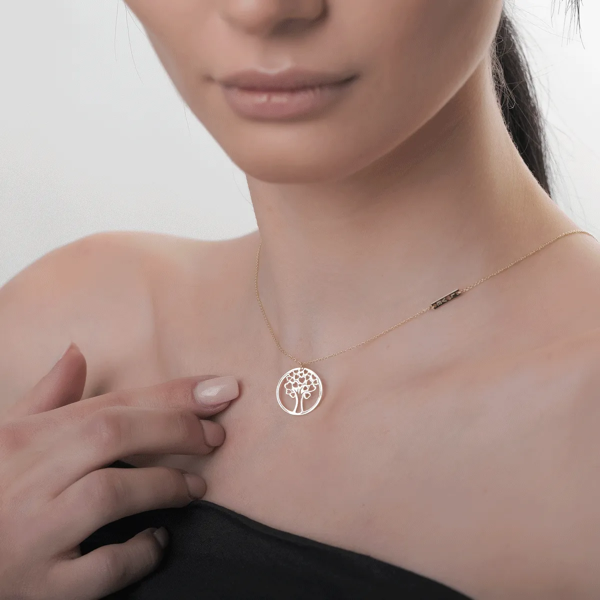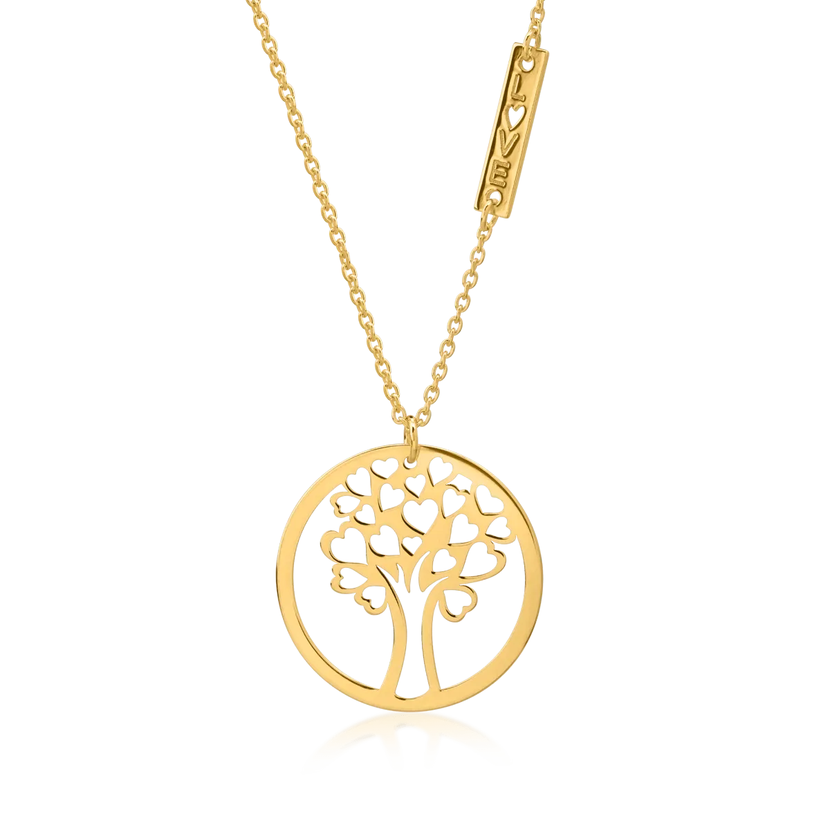 O tinuta eleganta si un mod de a o accesoriza ce intoarce privirile. Detaliile atent lucrate fac din acest lant cu pandantiv Copacul Vietii din aur galben accesoriul tau cheie pentru un look chic si memorabil. Poarta bijuterii iconice cu TEILOR.
