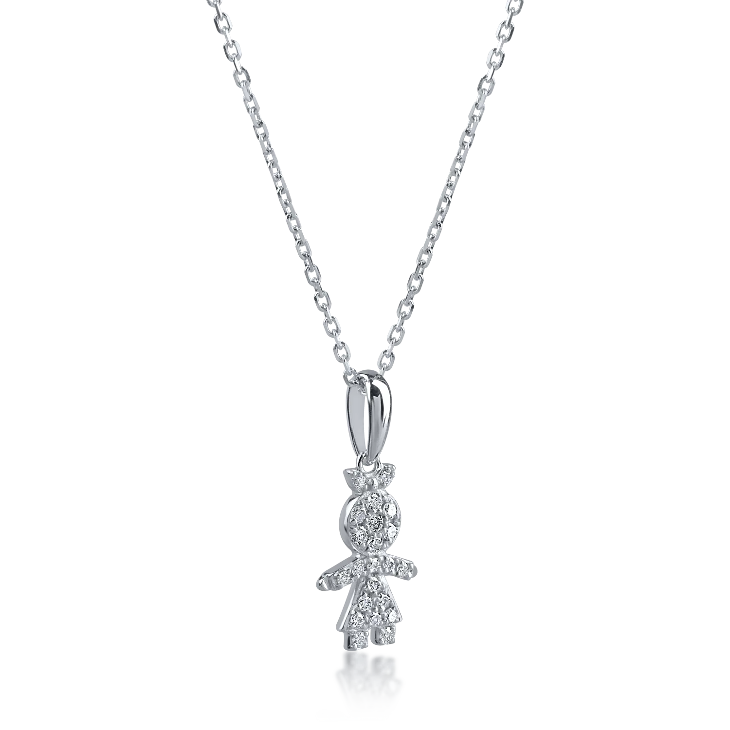 Lant cu pandantiv copil din aur alb cu diamante de 0.11ct