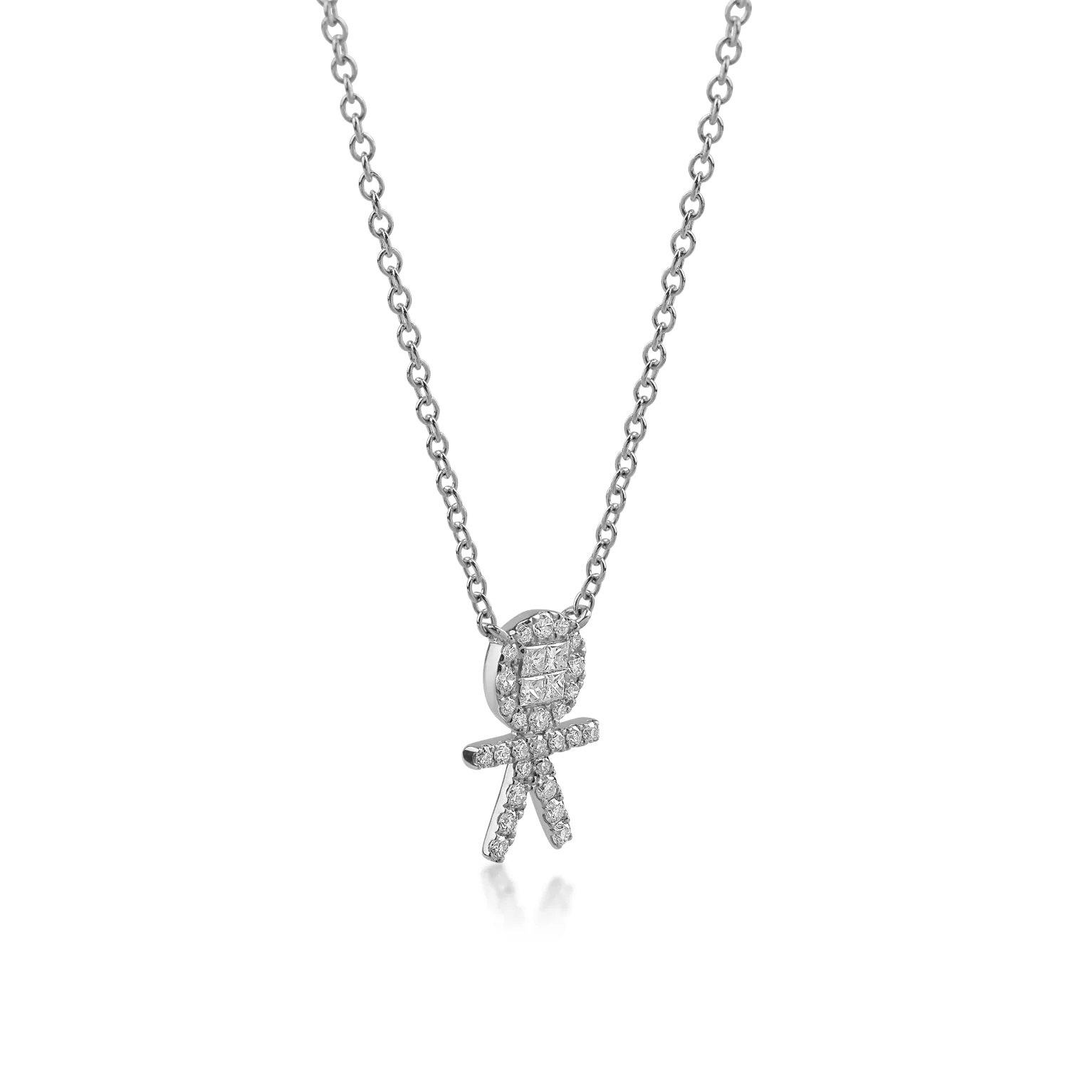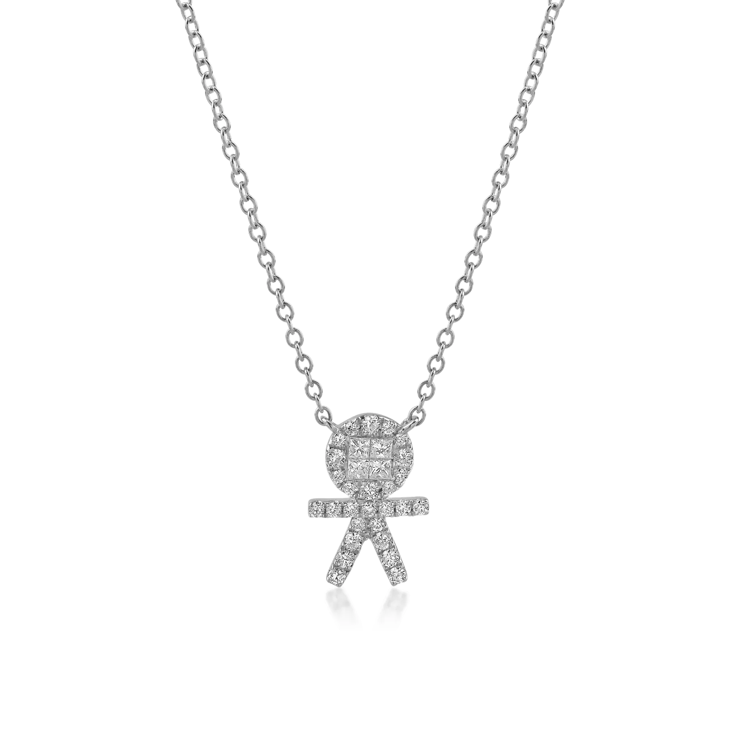 Lant cu pandantiv copil din aur alb cu diamante princess si rotunde de 0.32ct
