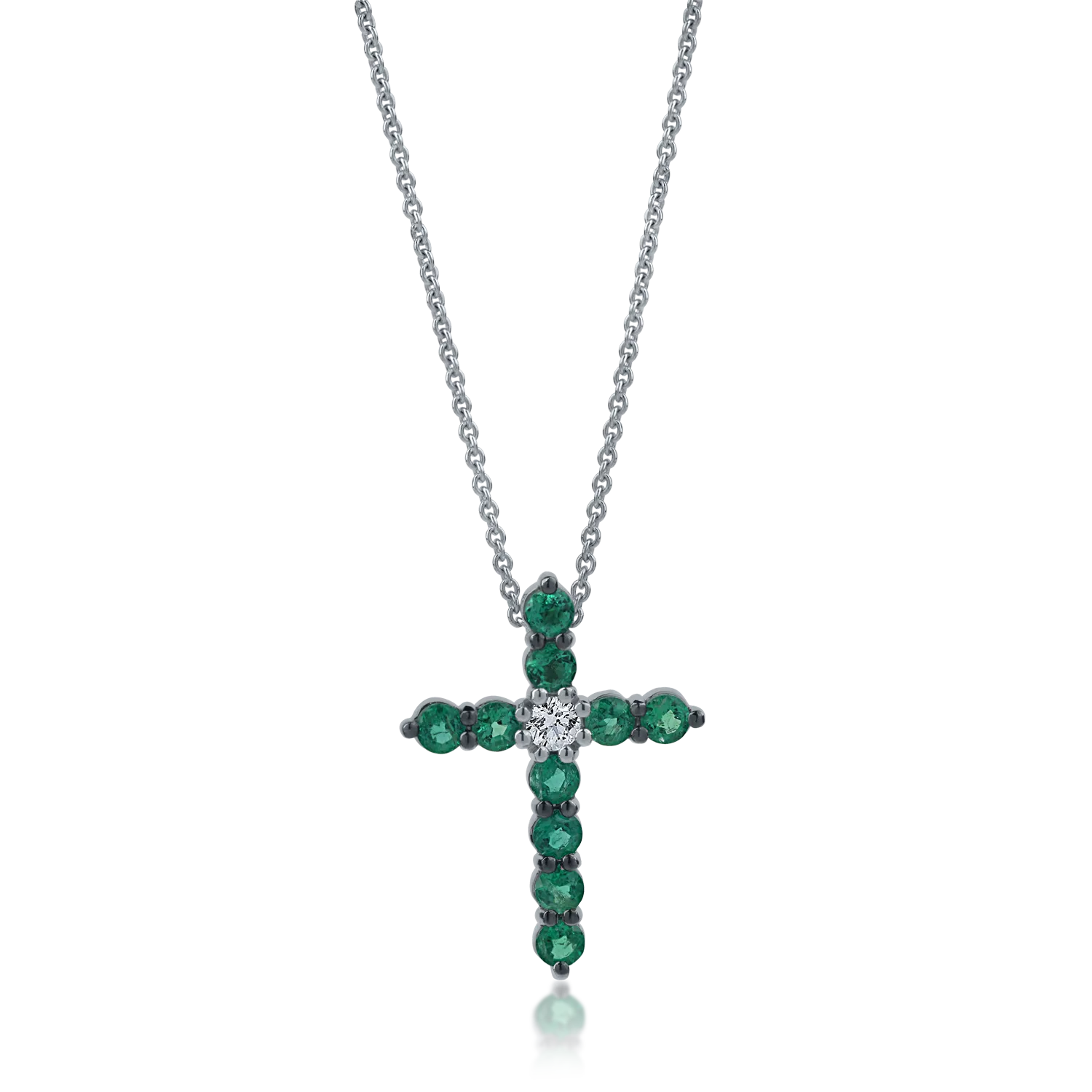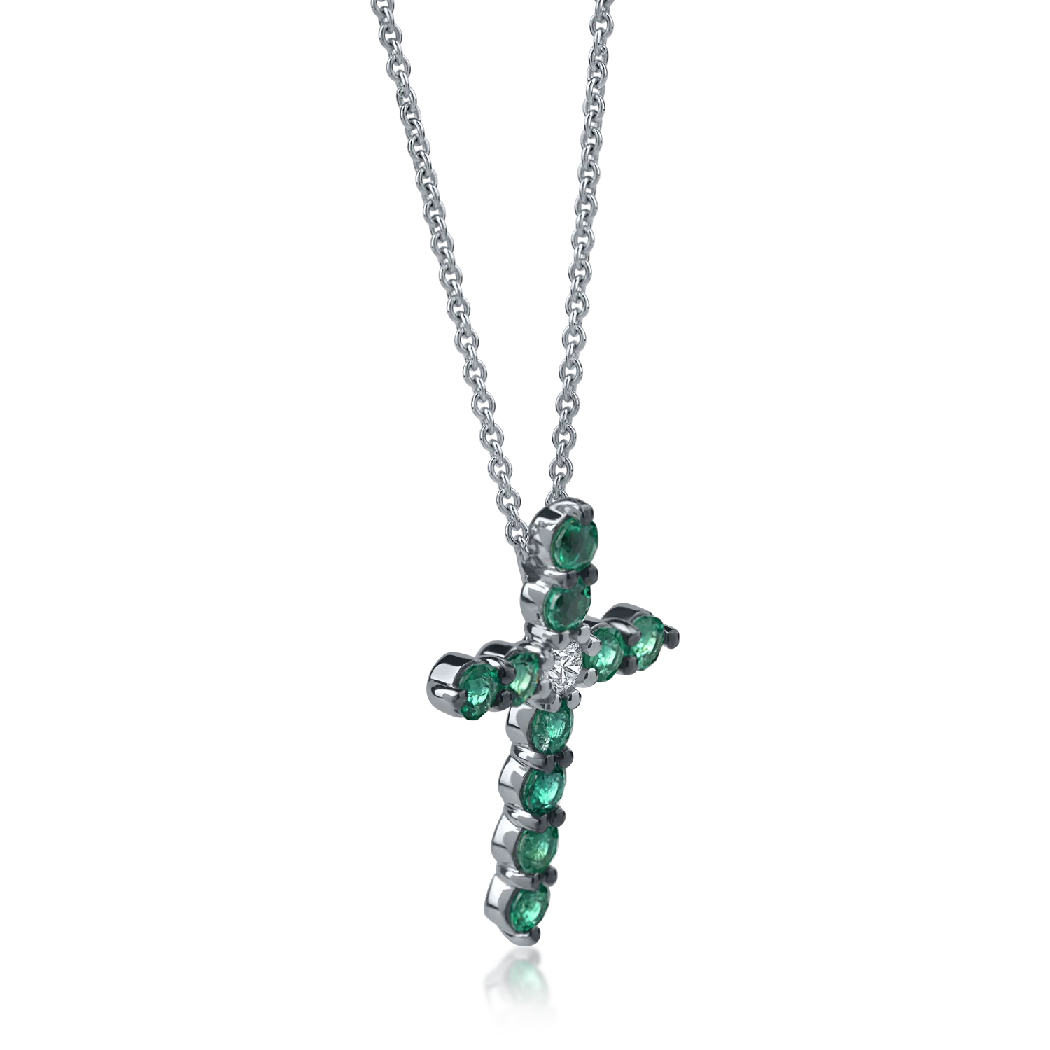 Lant cu pandantiv cruce din aur alb cu diamant si smaralde de 1.41ct