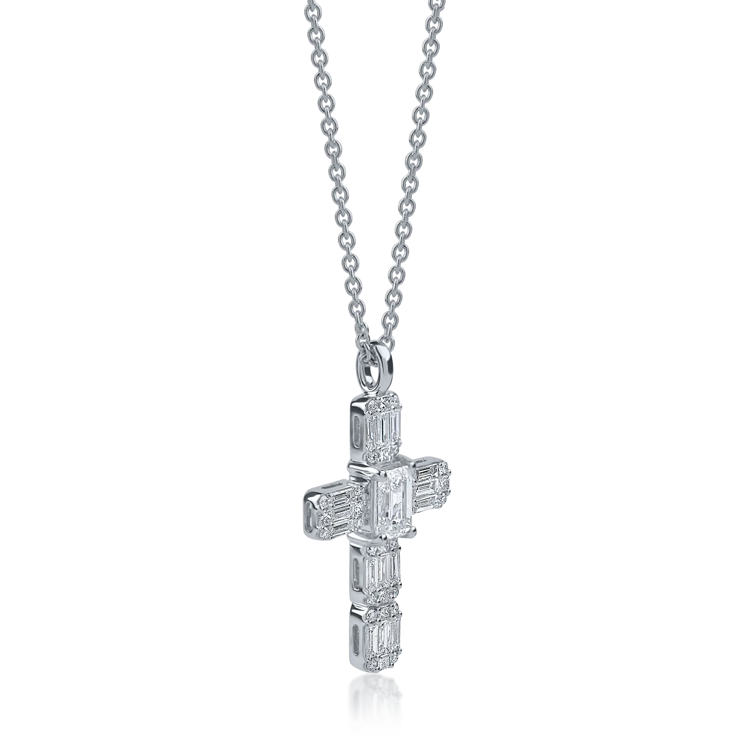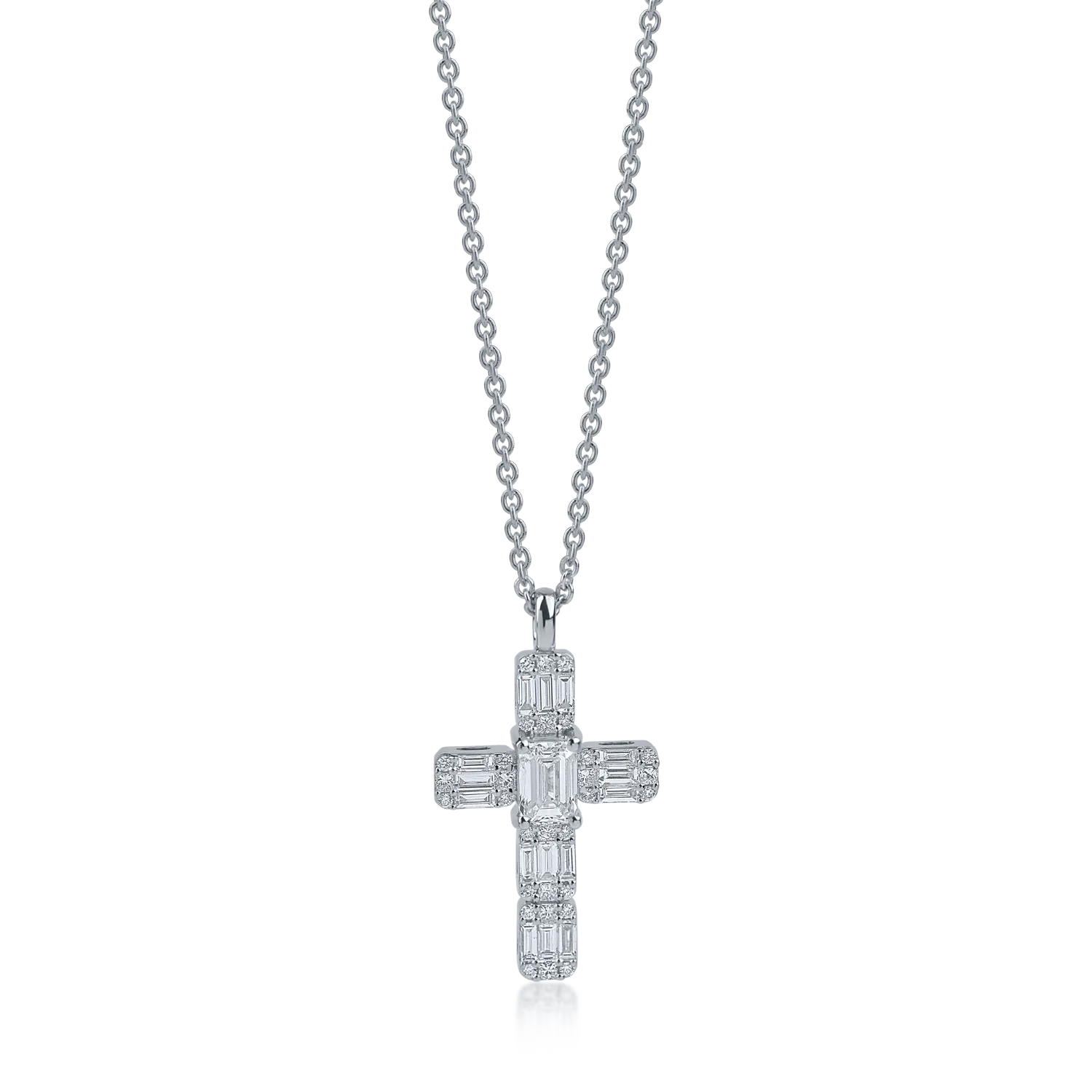 Lant cu pandantiv cruce din aur alb cu diamante baguette si rotunde de 1.1ct