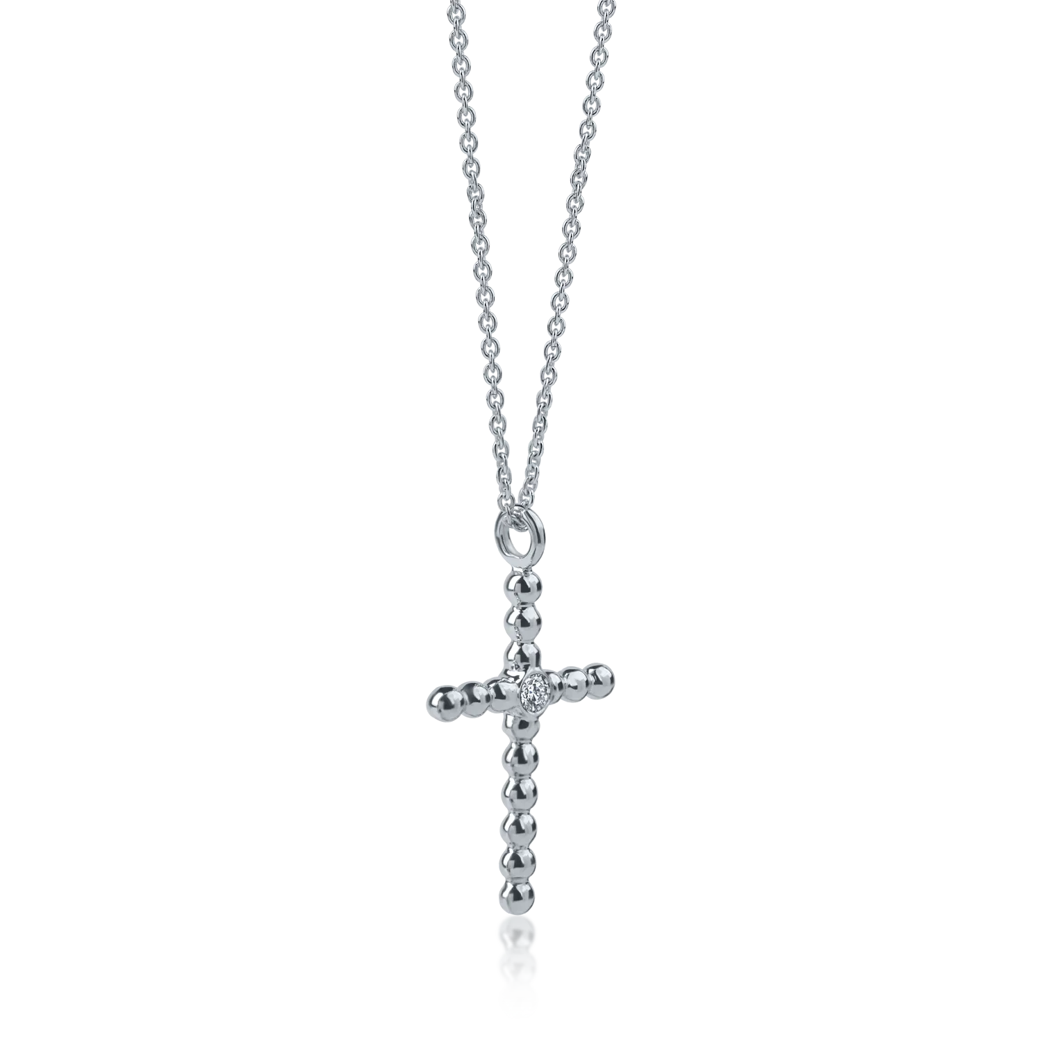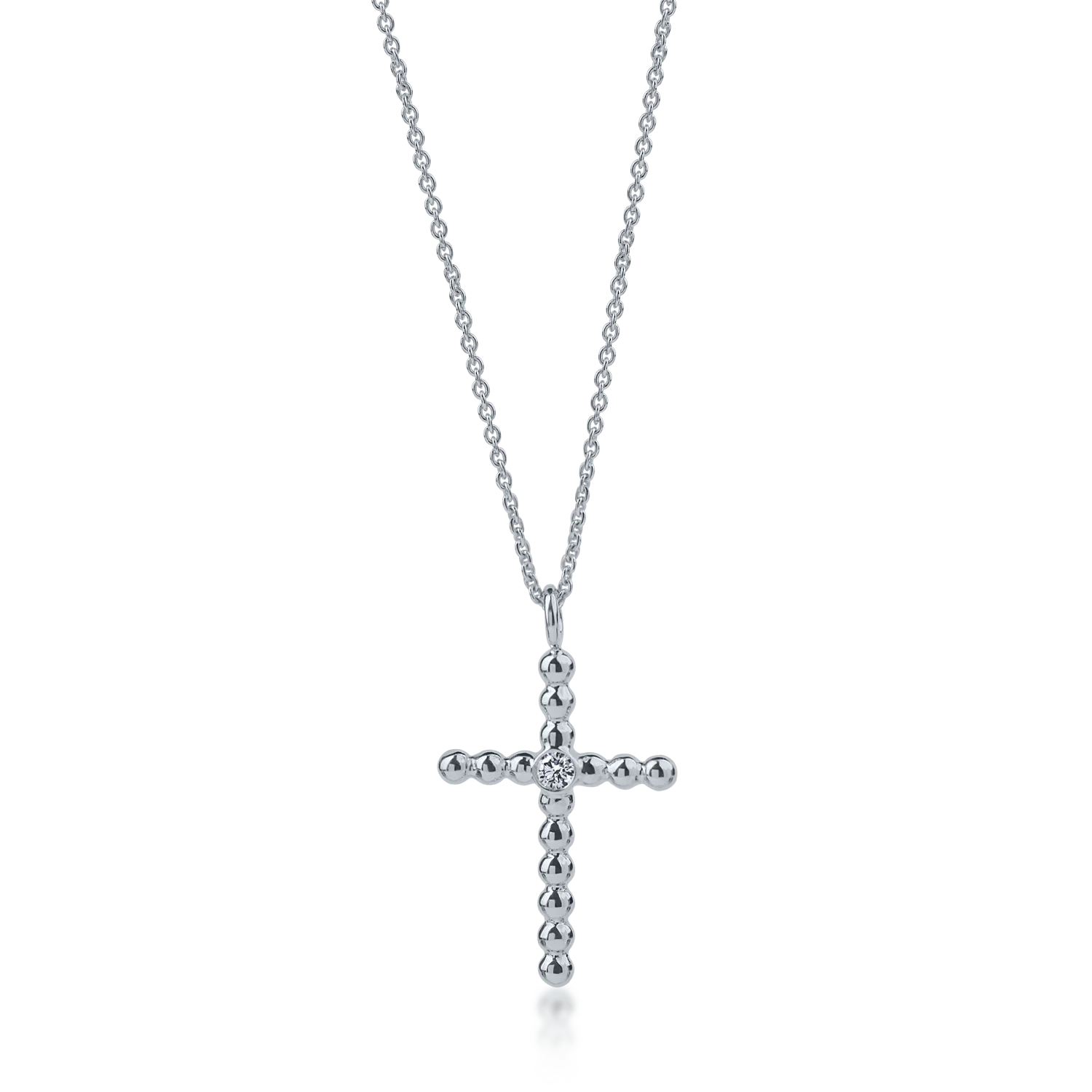 Lant cu pandantiv cruce din aur alb cu diamante de 0.05ct