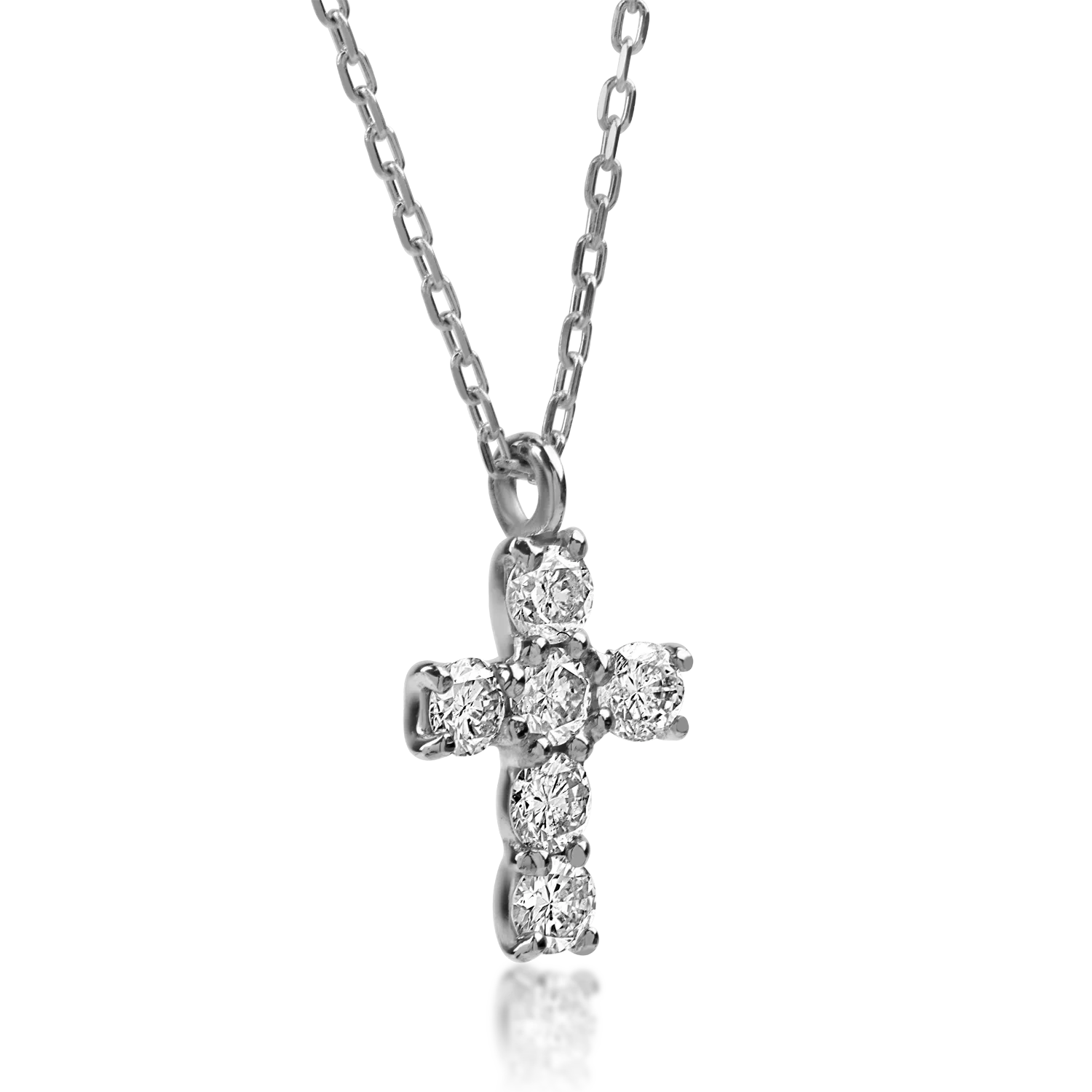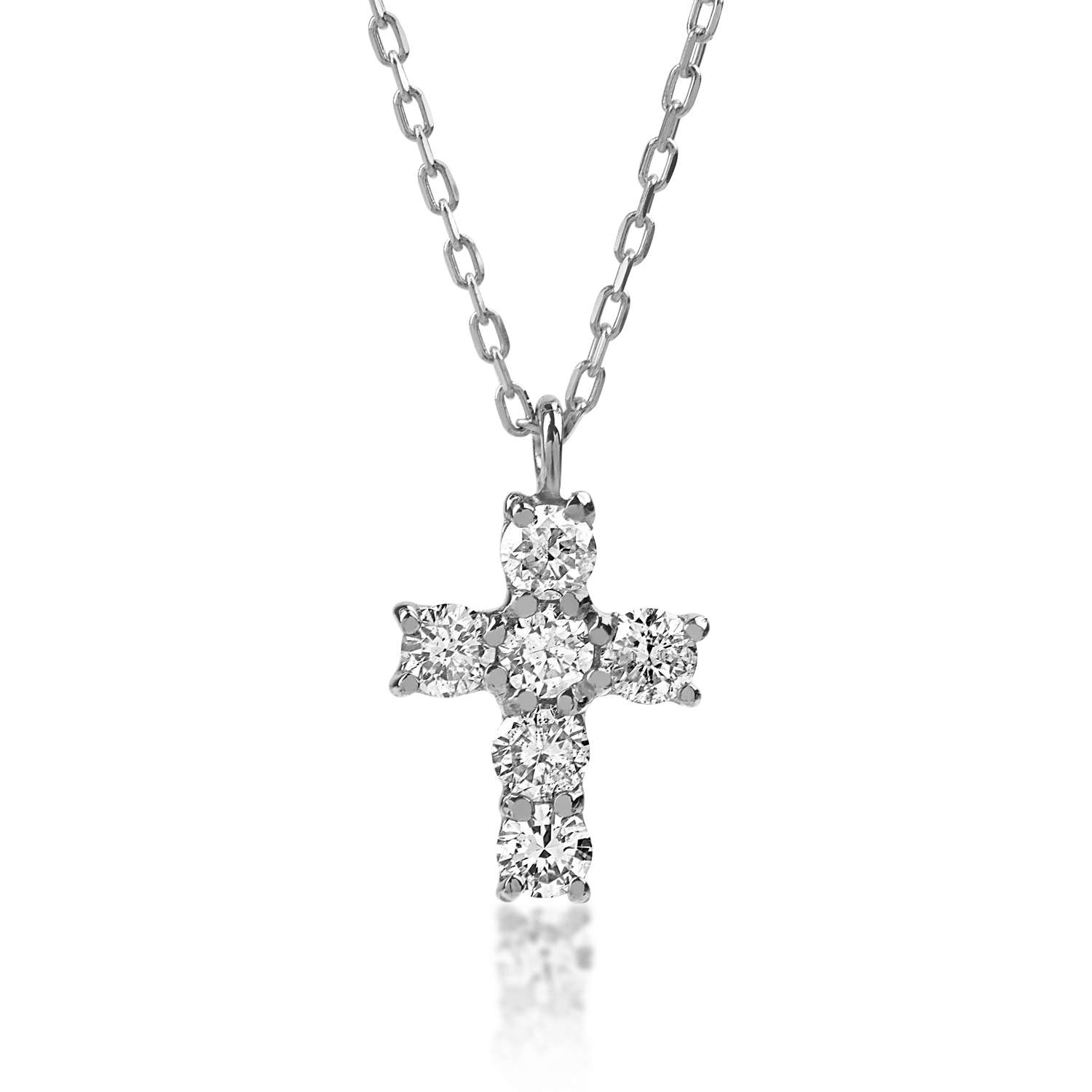 Lant cu pandantiv cruce din aur alb cu diamante de 0.1ct
