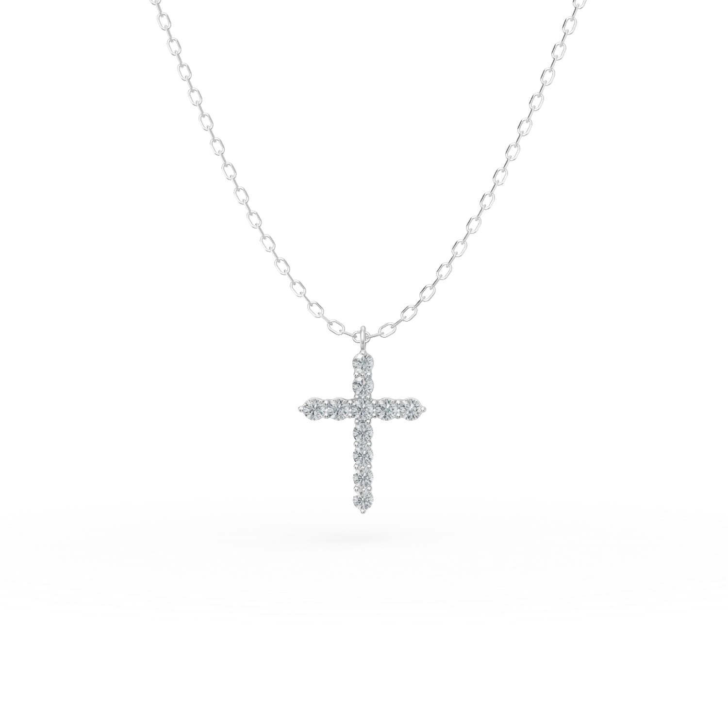 Lant cu pandantiv cruce din aur alb cu diamante de 0.2ct
