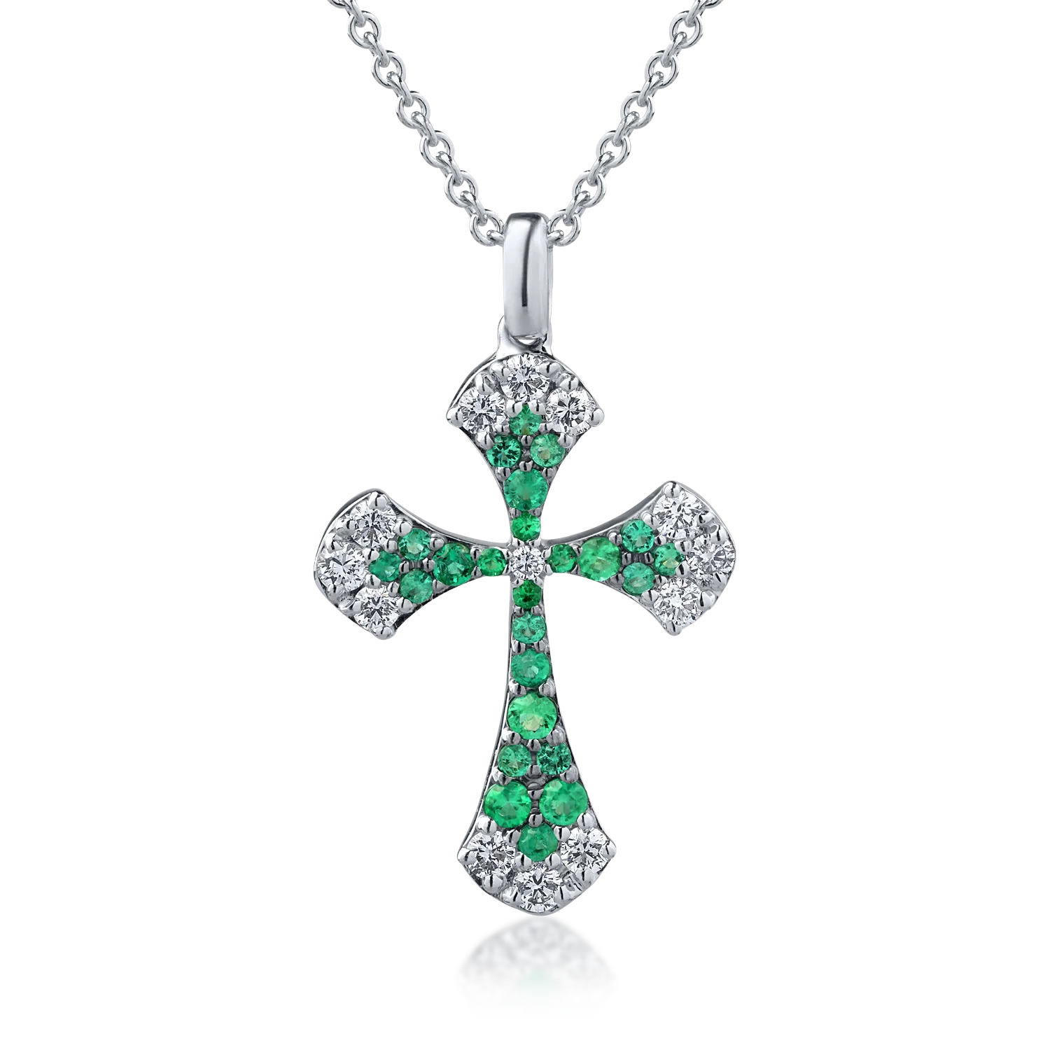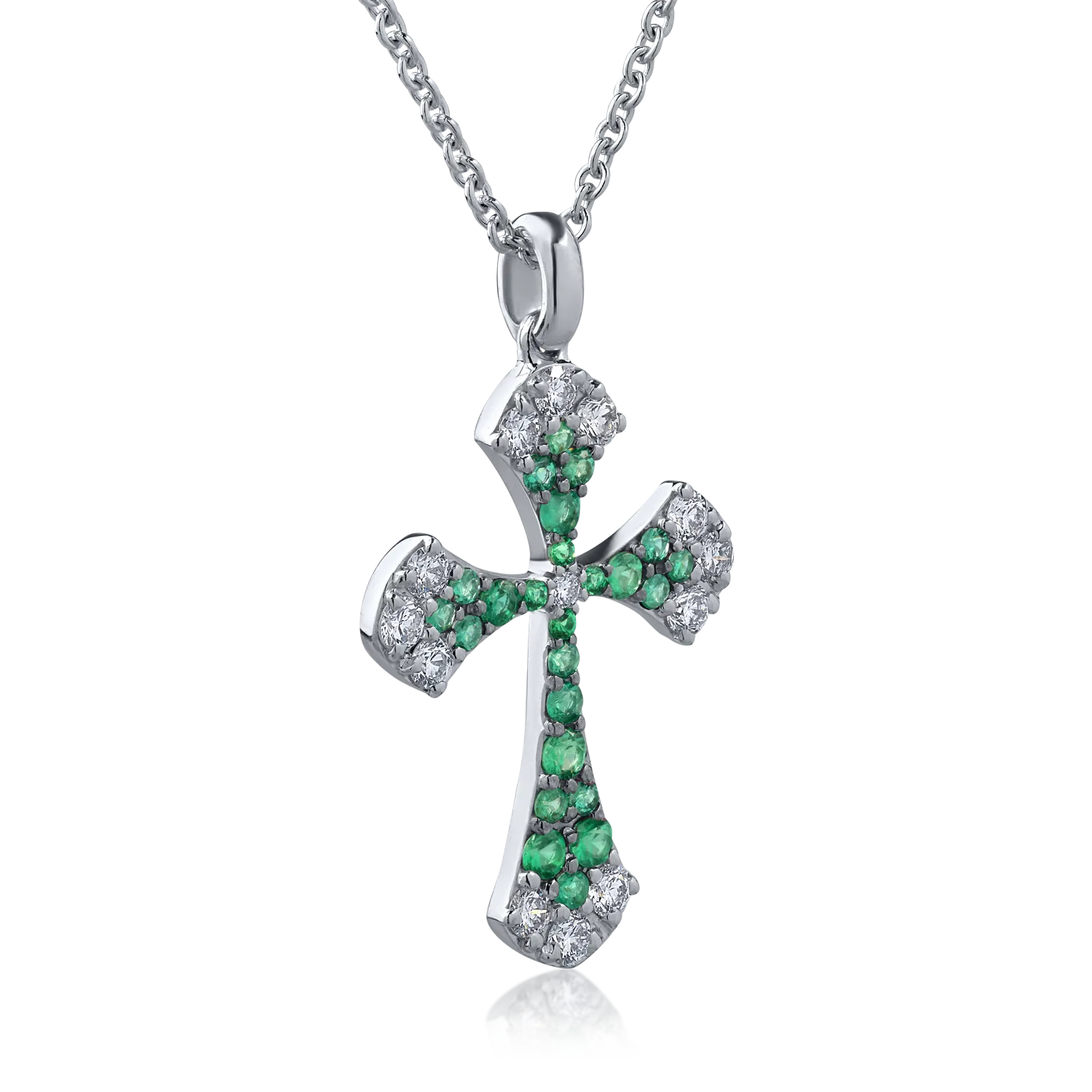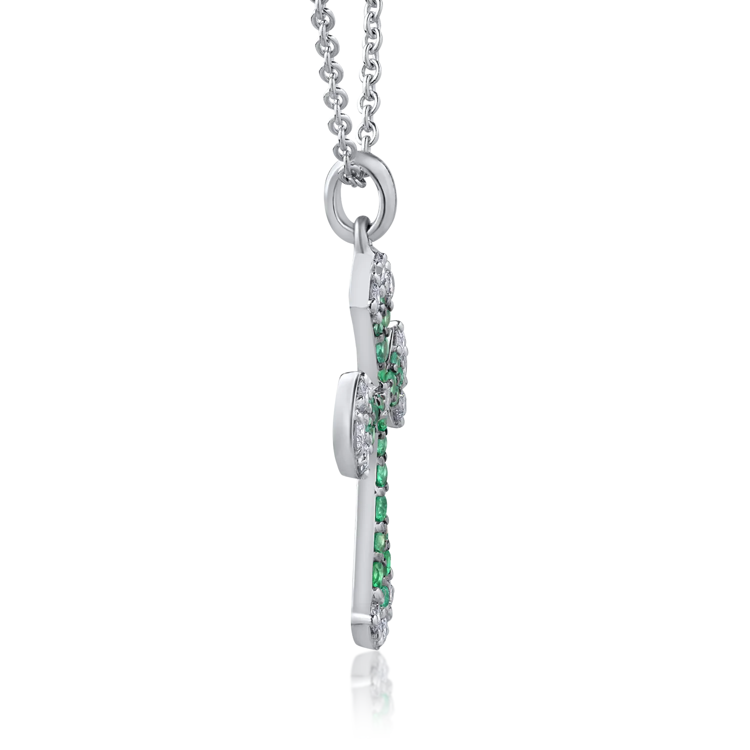 Lant cu pandantiv cruce din aur alb cu diamante de 0.42ct si smaralde de 0.31ct