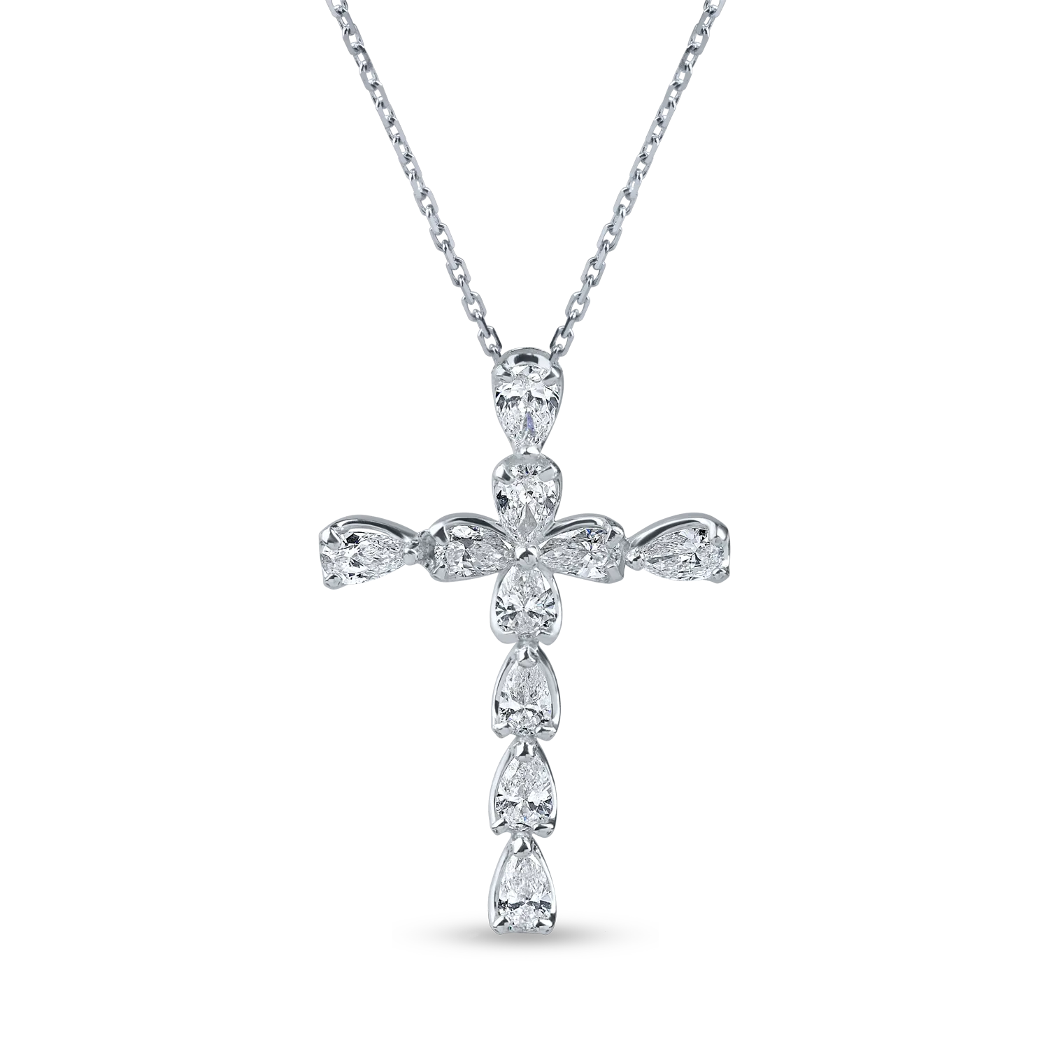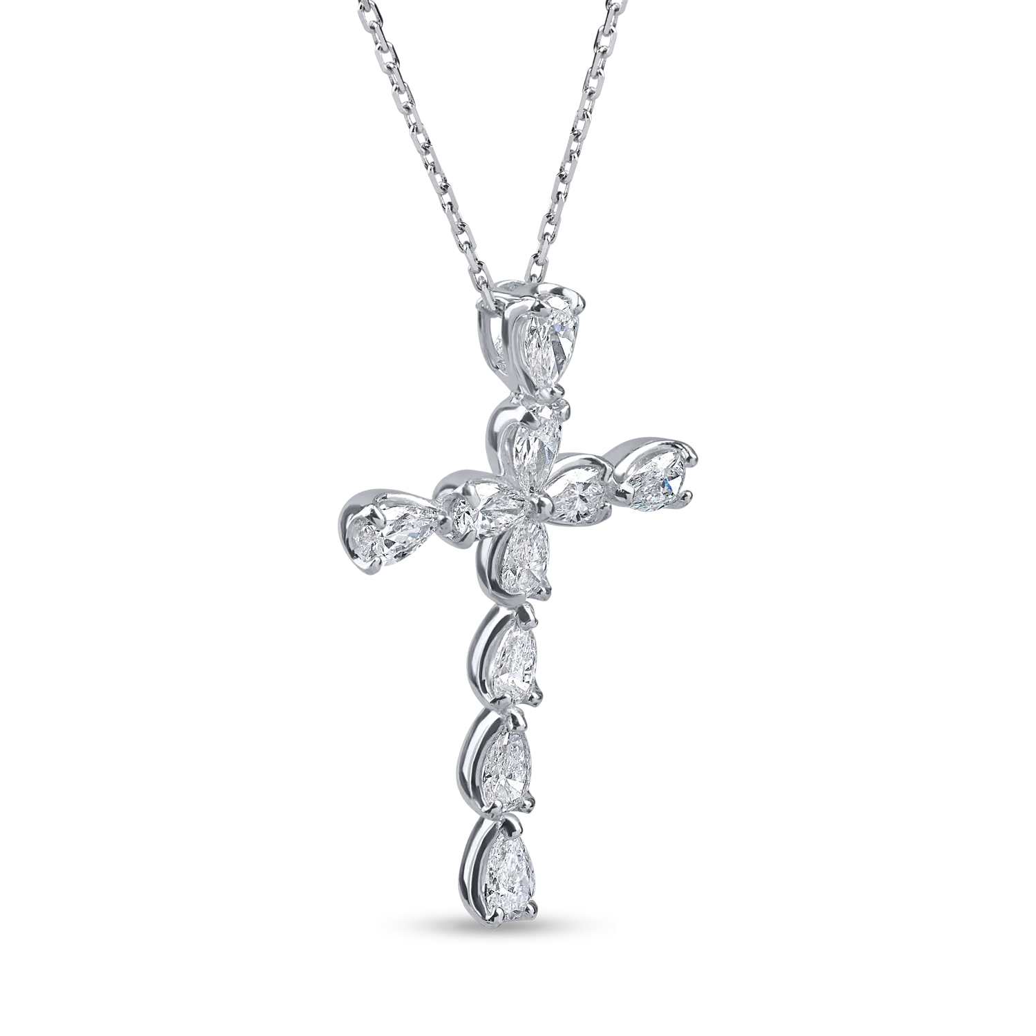 Lant cu pandantiv cruce din aur alb cu diamante de 0.7ct