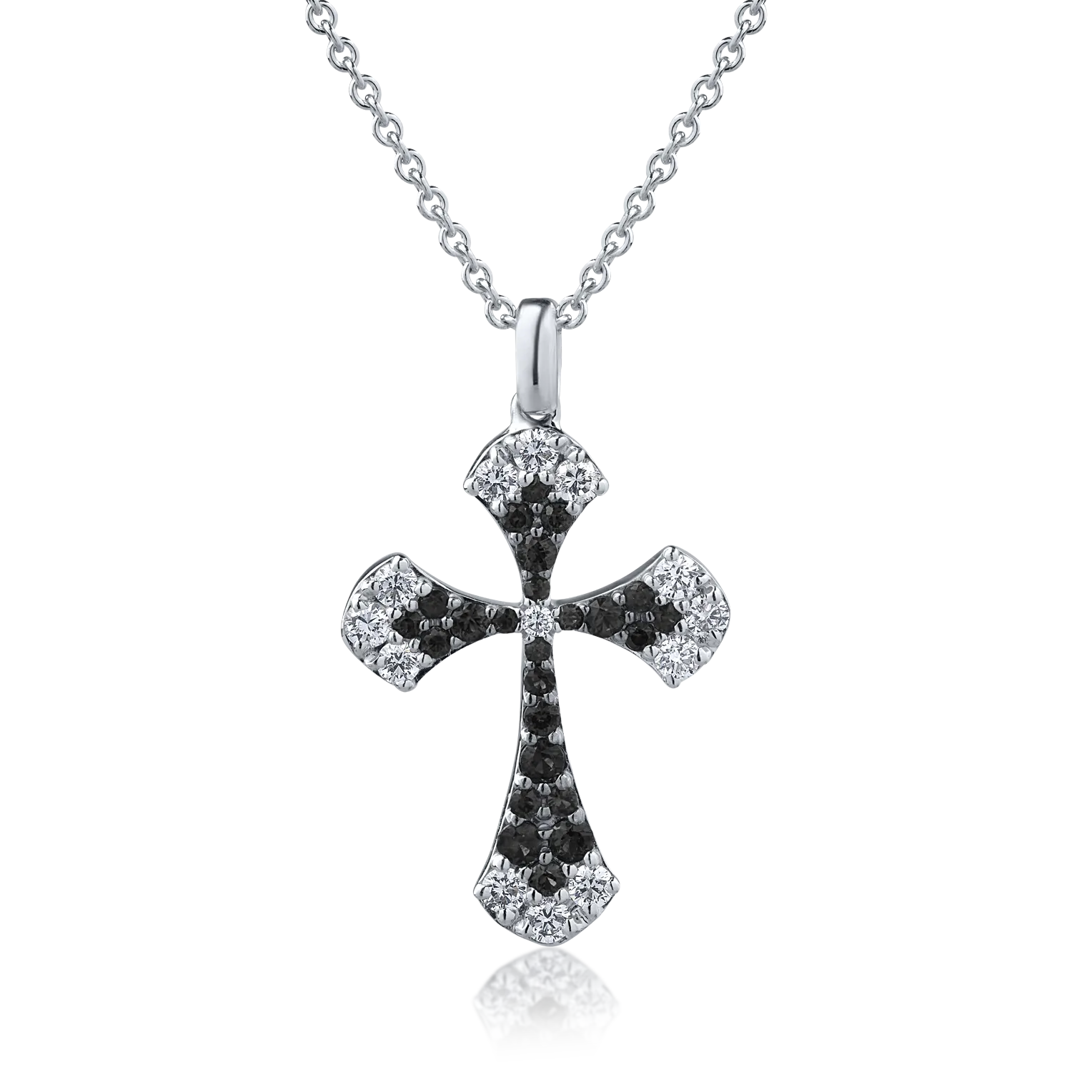 Lant cu pandantiv cruce din aur alb cu diamante de 0.81ct