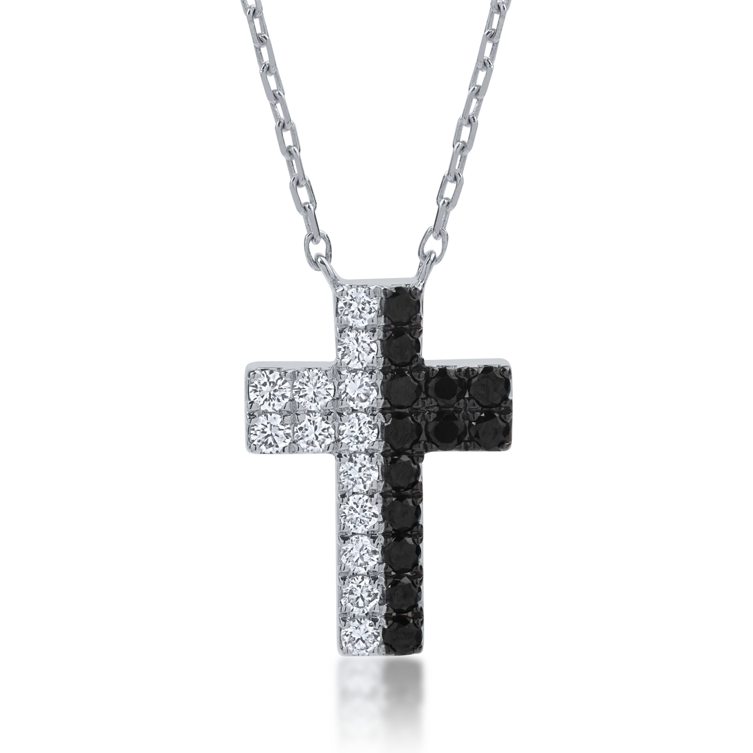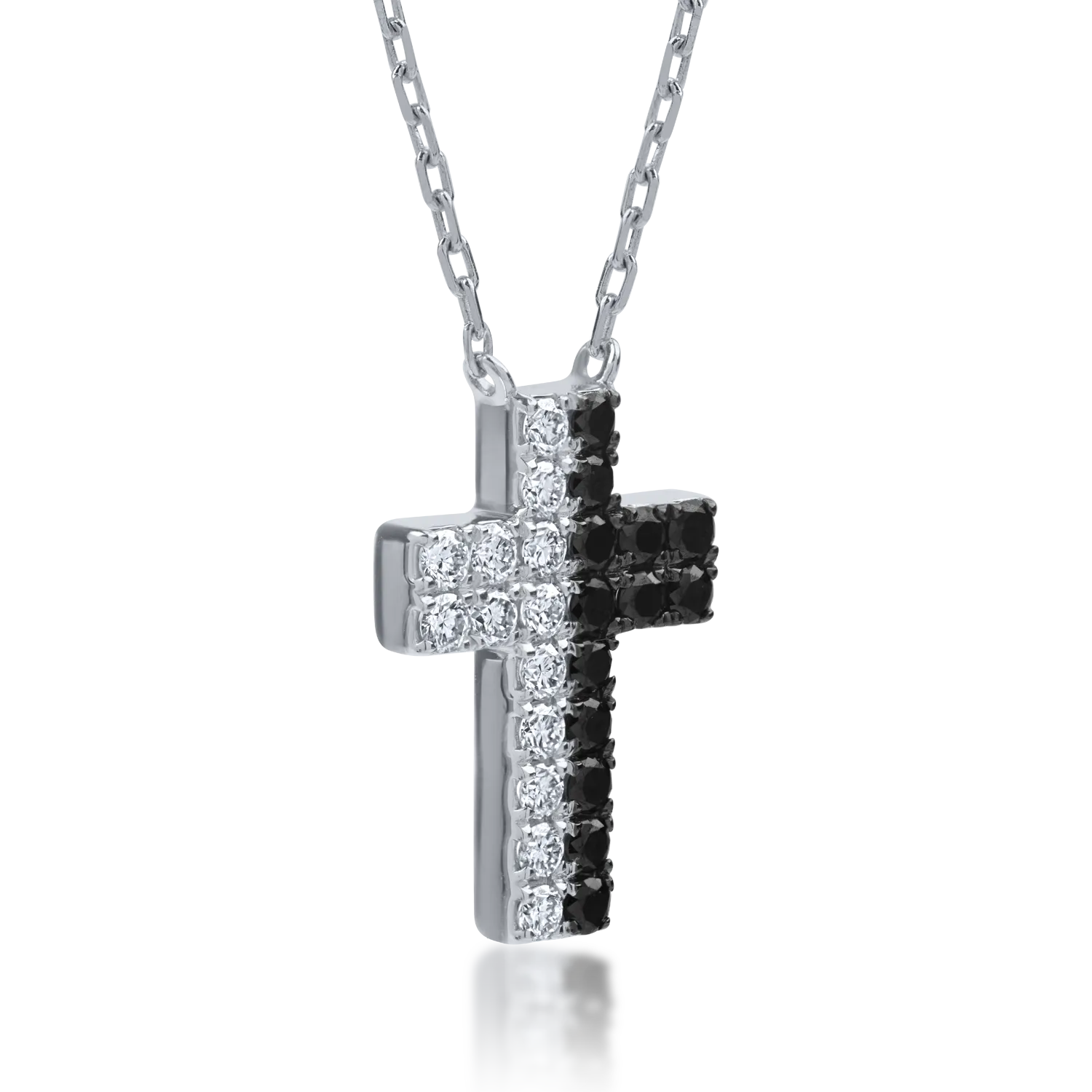 Lant cu pandantiv cruce din aur alb cu diamante incolore si negre de 0.4ct
