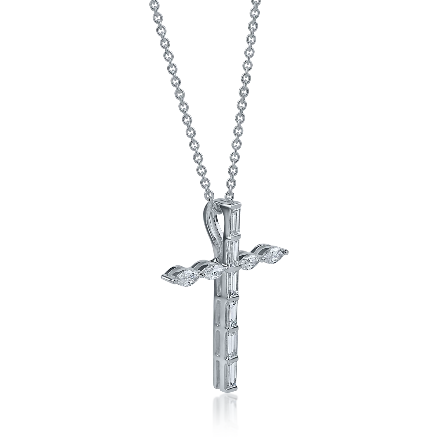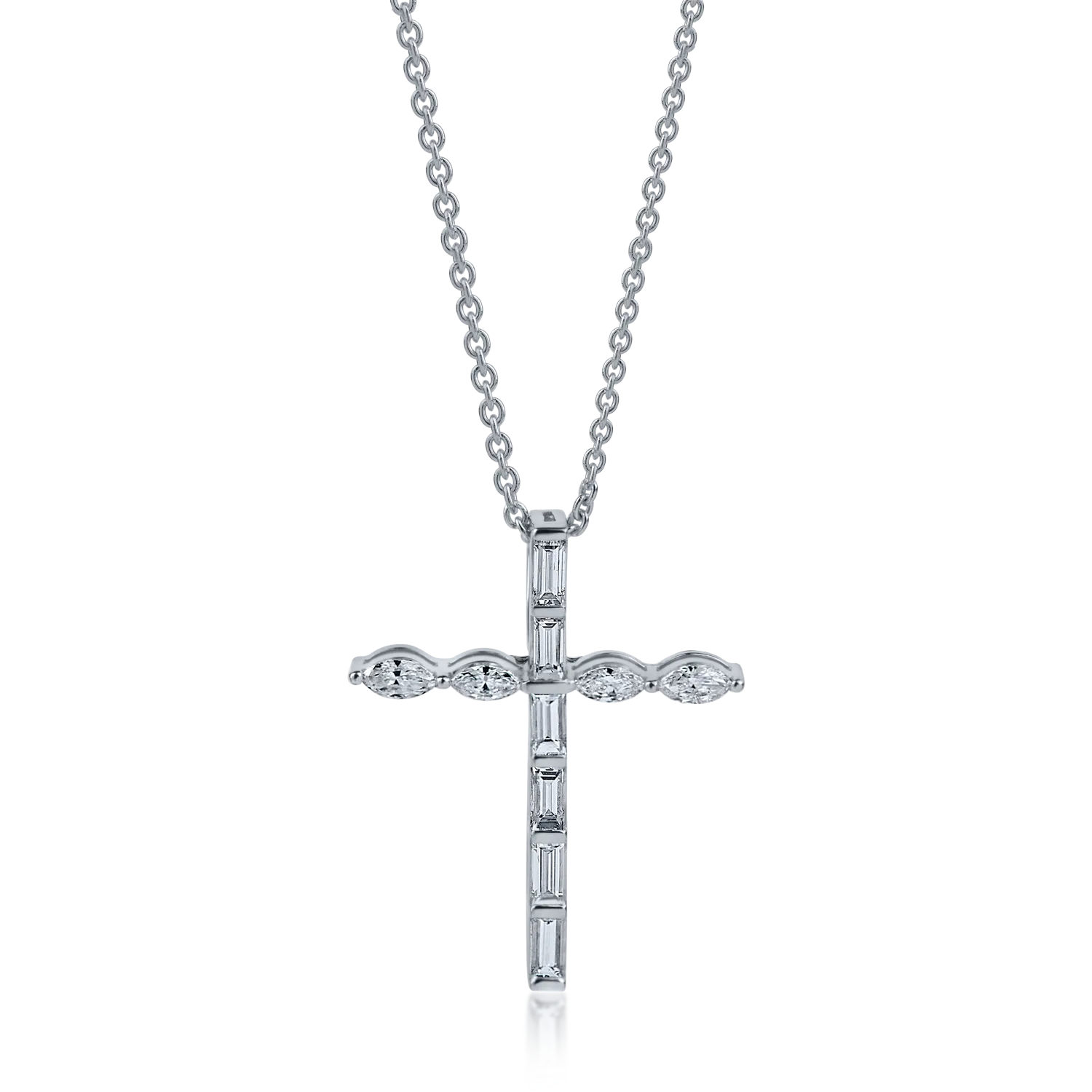 Lant cu pandantiv cruce din aur alb cu diamante marquise si rotunde de 0.46ct