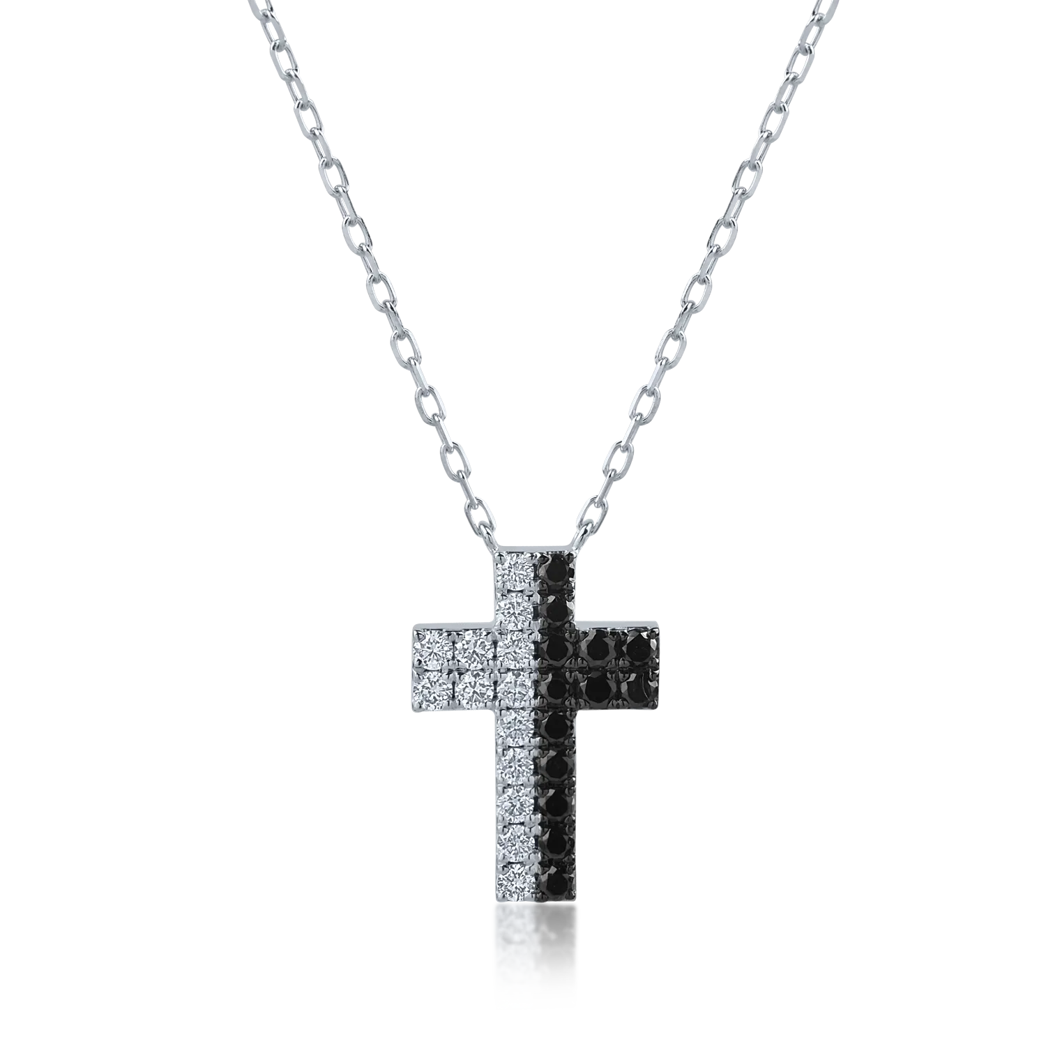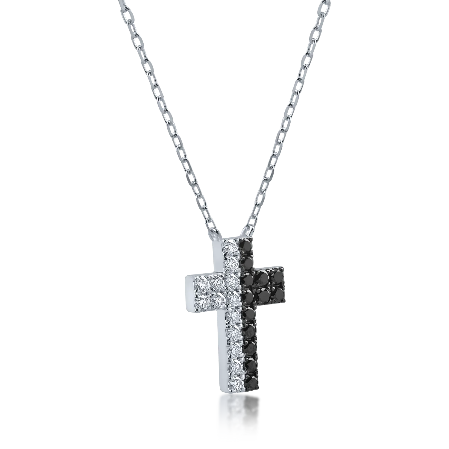 Lant cu pandantiv cruce din aur alb cu diamante negre de 0.25ct si diamante transparente de 0.22ct