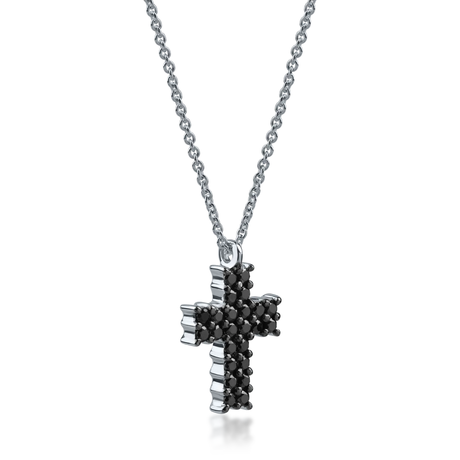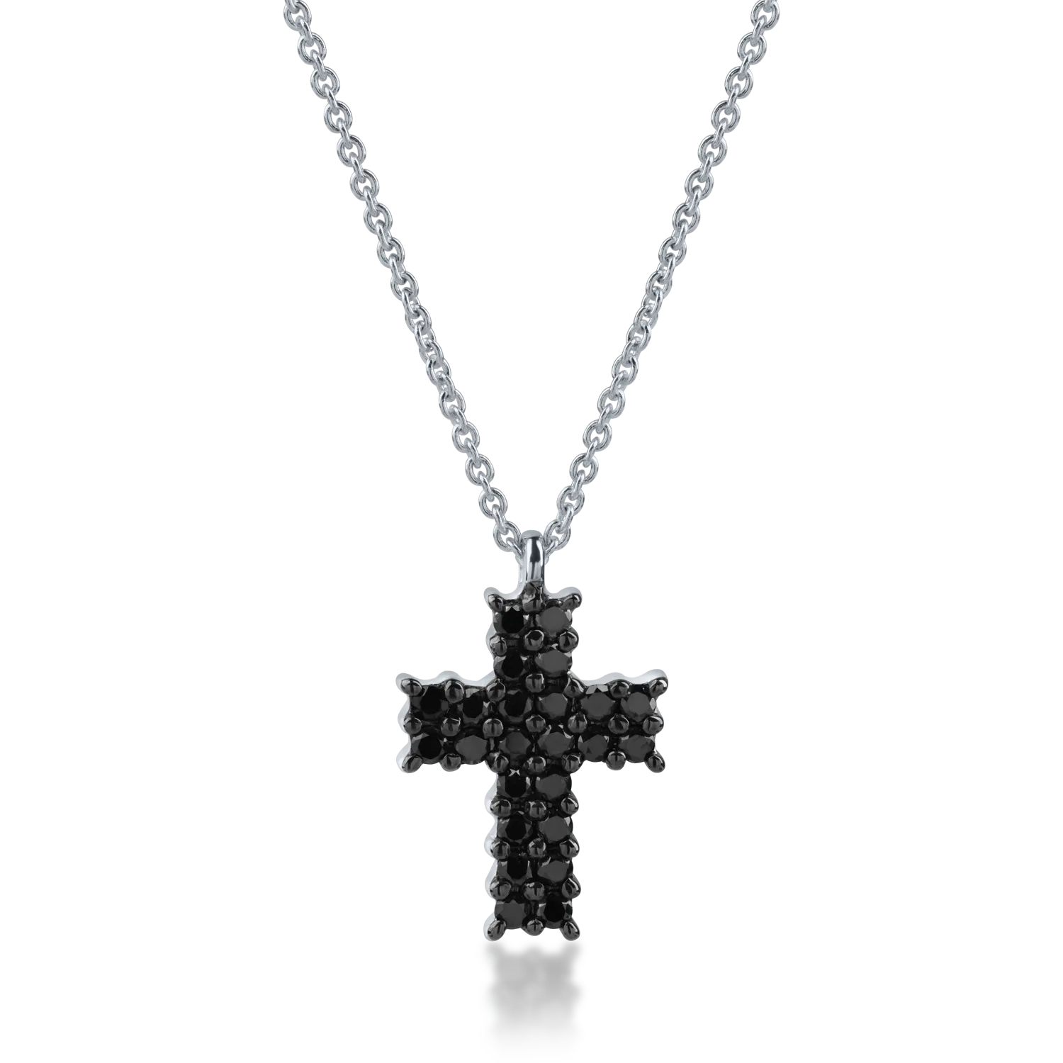 Lant cu pandantiv cruce din aur alb cu diamante negre de 0.38ct