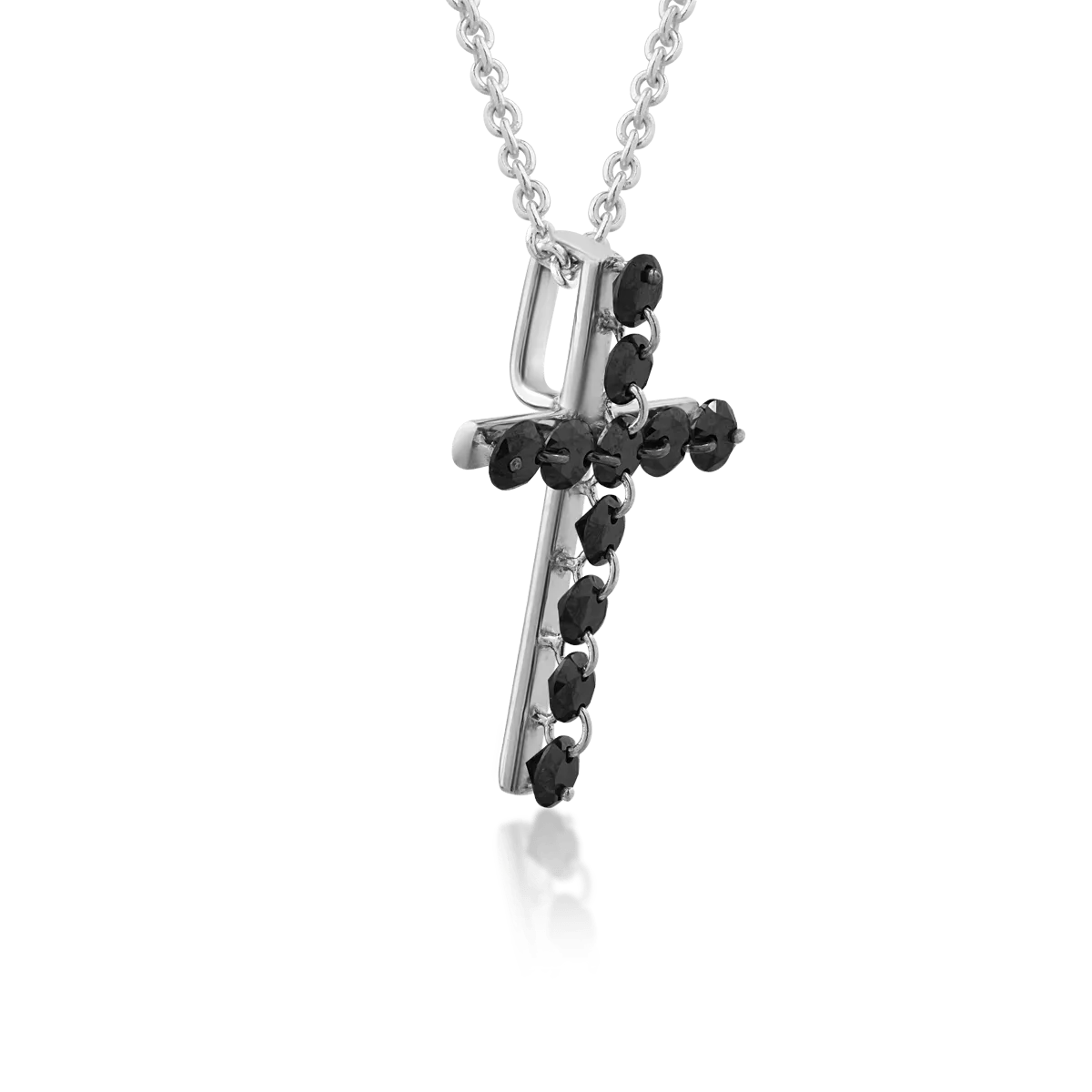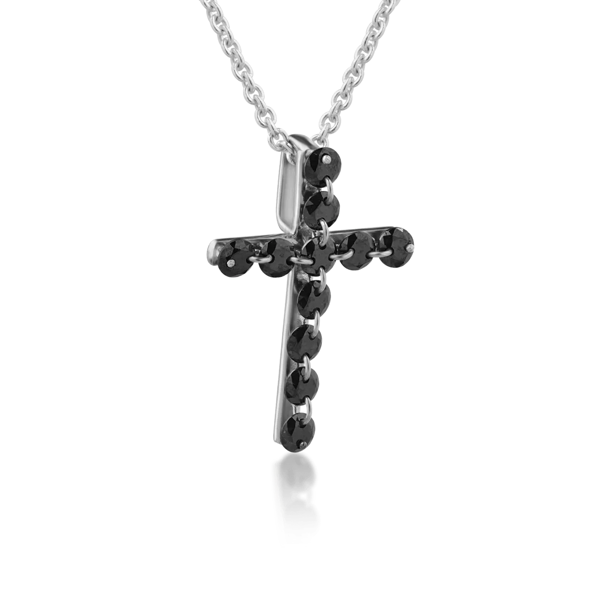 Lant cu pandantiv cruce din aur alb cu diamante negre de 0.43ct
