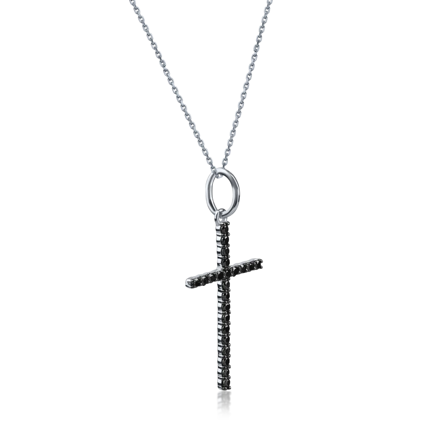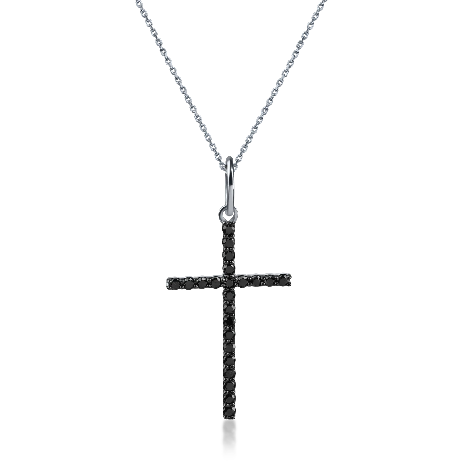 Lant cu pandantiv cruce din aur alb cu diamante negre de 0.4ct