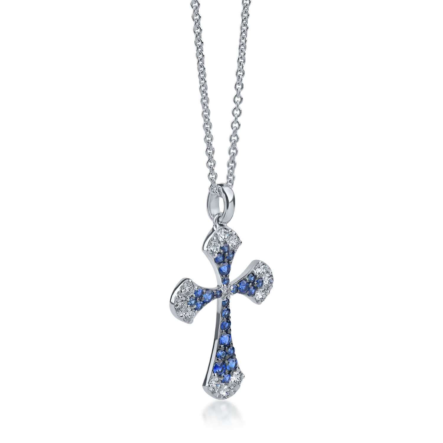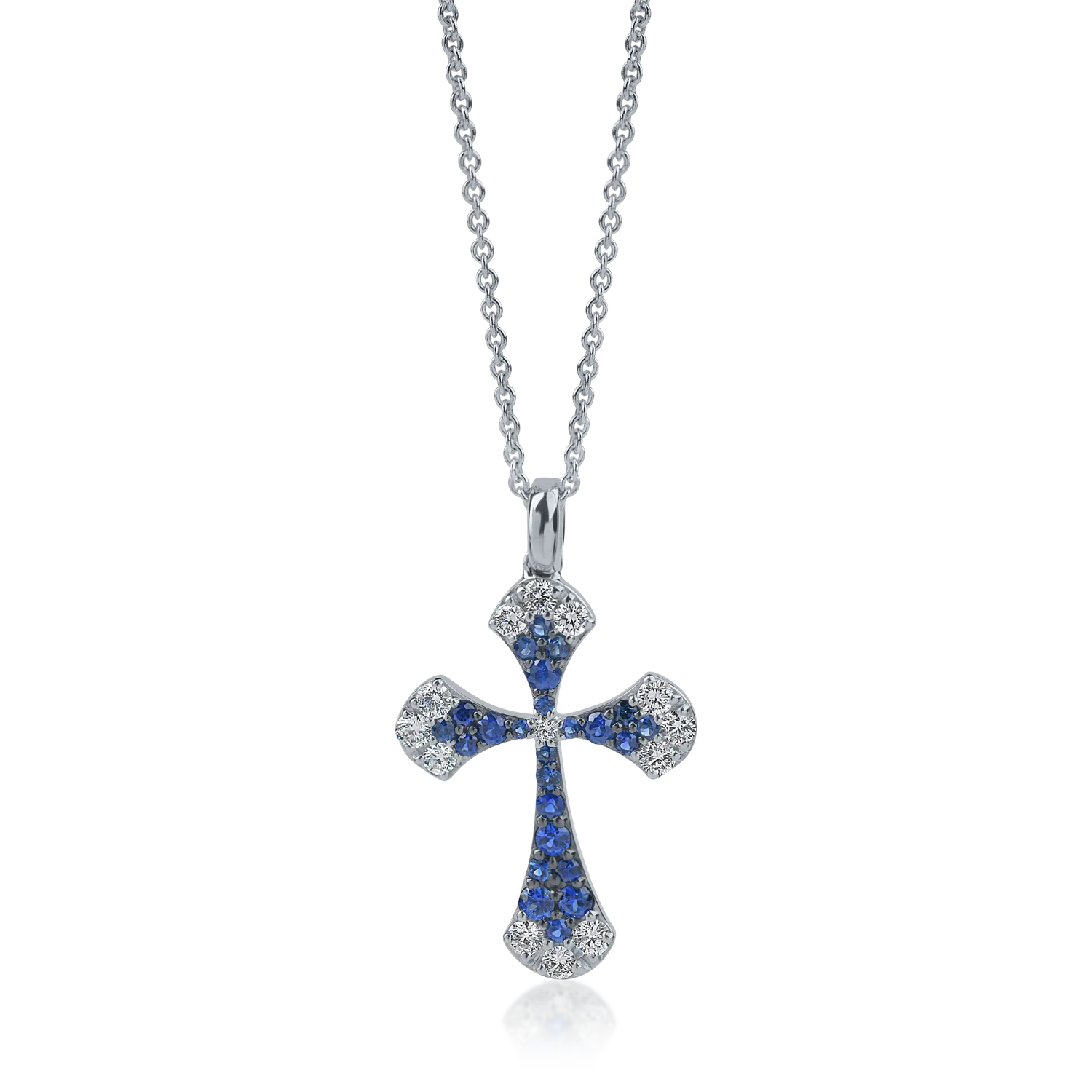Lant cu pandantiv cruce din aur alb cu diamante si safire de 0.94ct