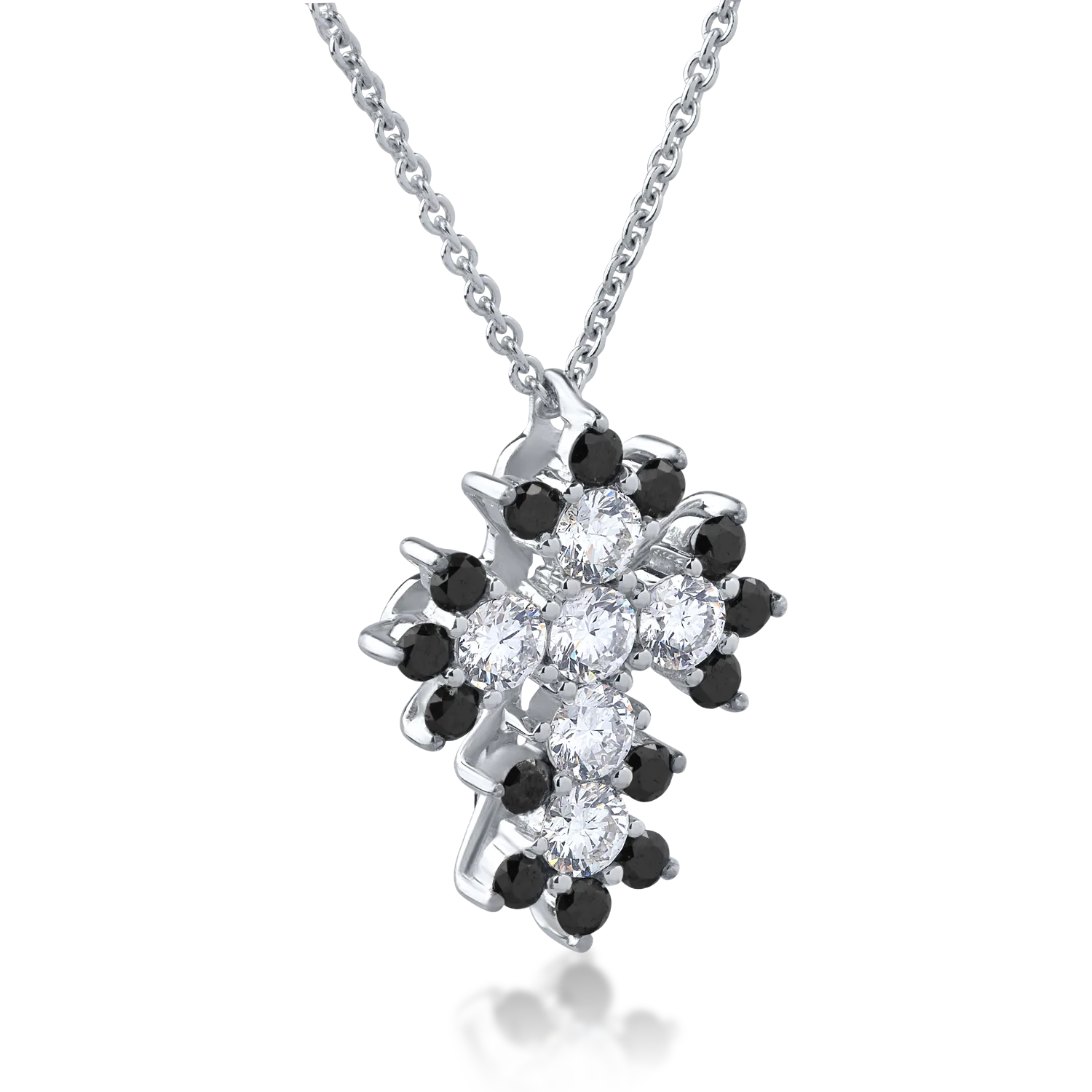 Lant cu pandantiv cruce din aur alb cu diamante transparente de 0.61ct si diamante negre de 0.41ct