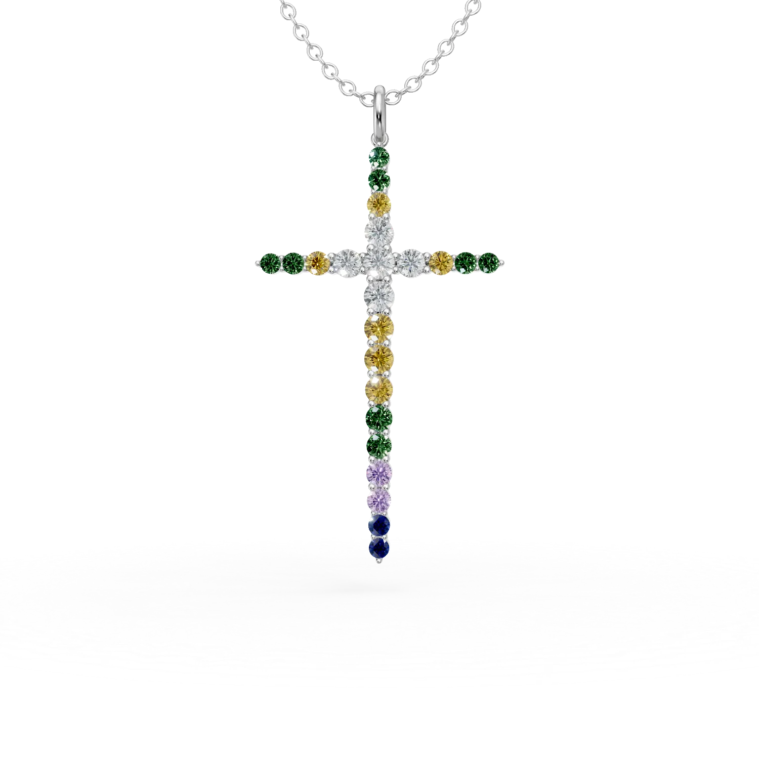 Lant cu pandantiv cruce din aur alb cu pietre pretioase si semipretioase de 1ct