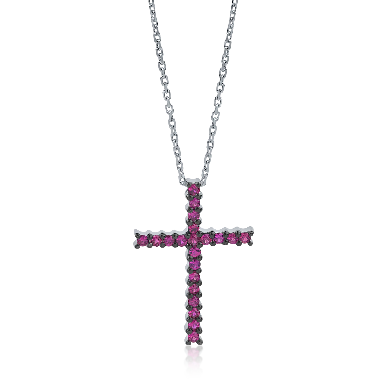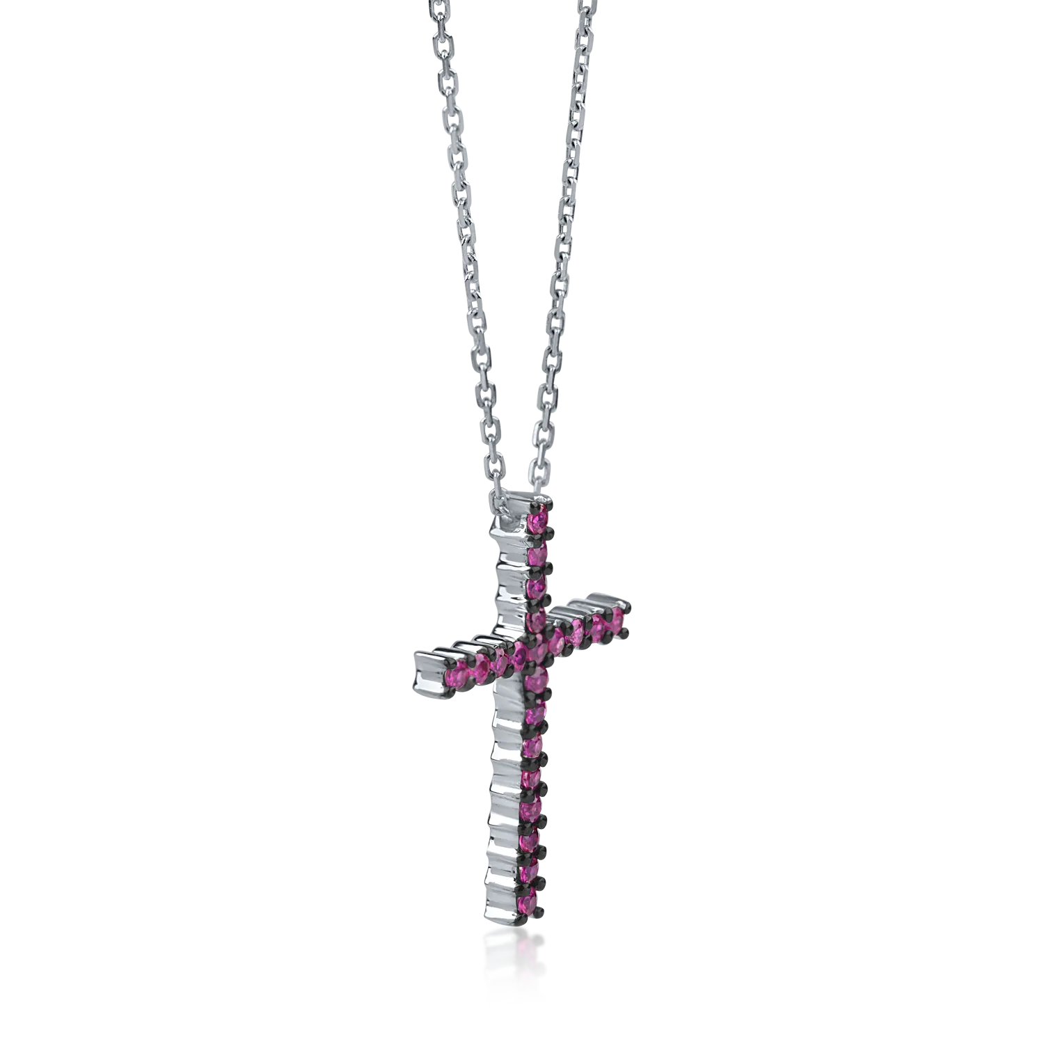 Lant cu pandantiv cruce din aur alb cu rubine de 0.42ct
