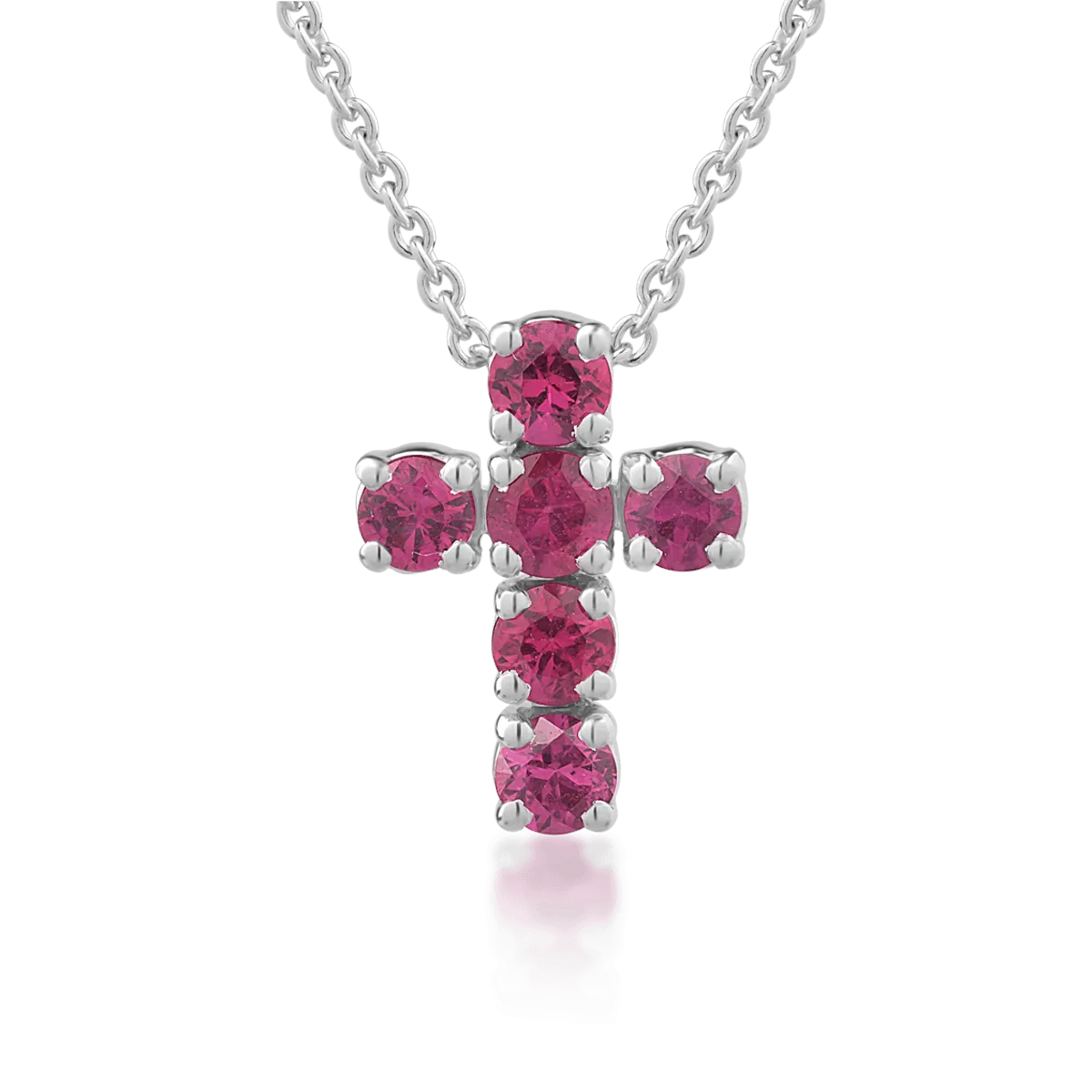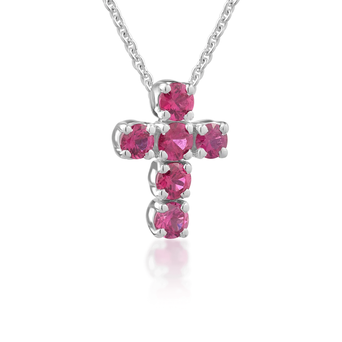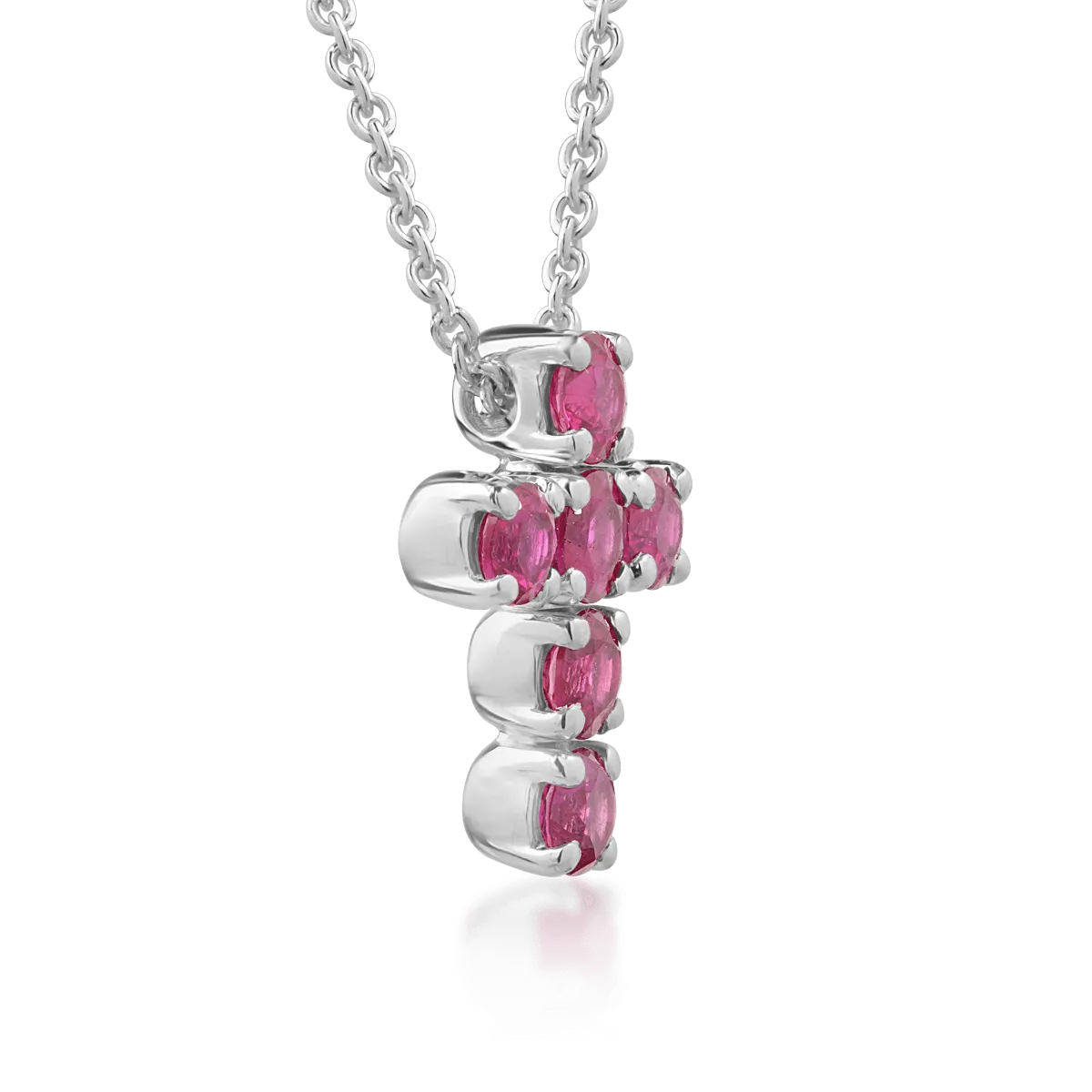 Lant cu pandantiv cruce din aur alb cu rubine de 0.72ct