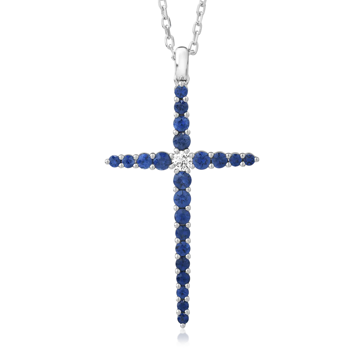Lant cu pandantiv cruce din aur alb cu safire de 1.1ct si un diamant de 0.09ct