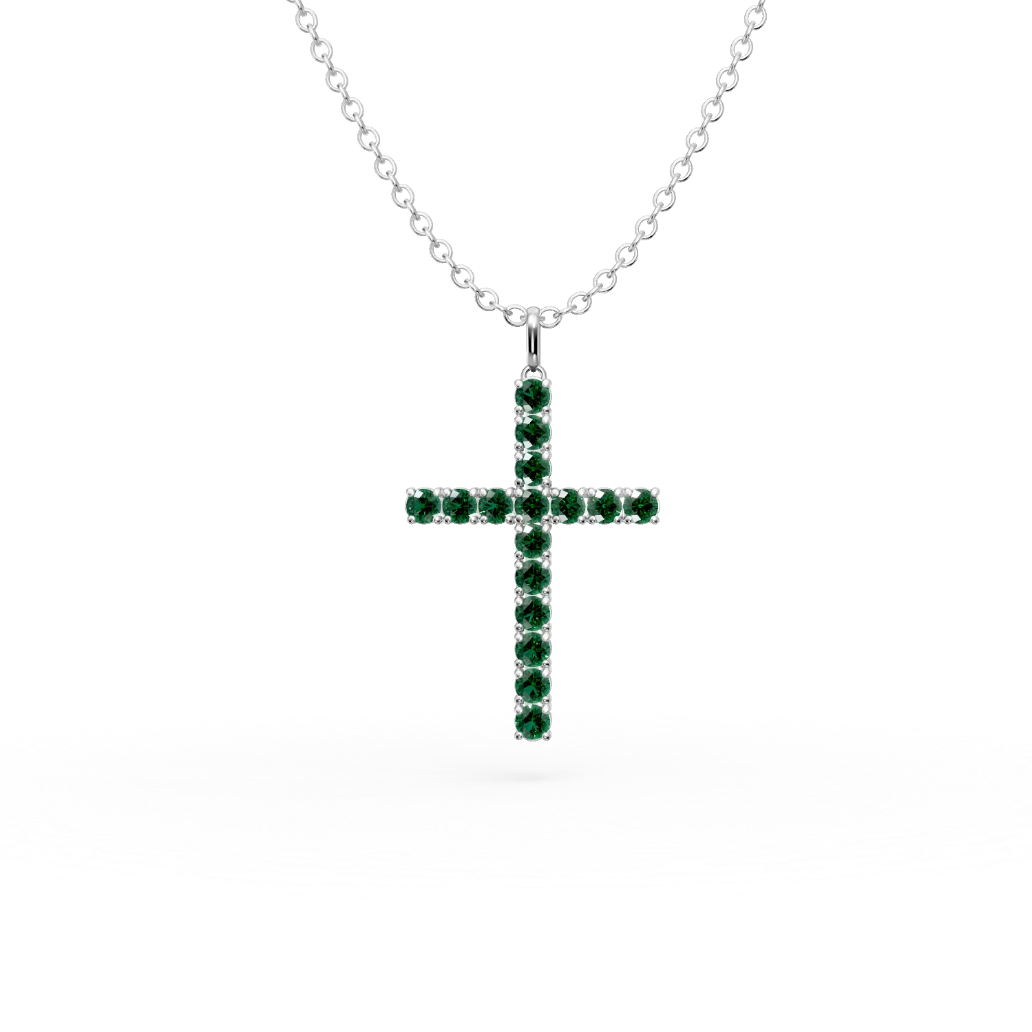 Lant cu pandantiv cruce din aur alb cu smaralde de 1.1ct