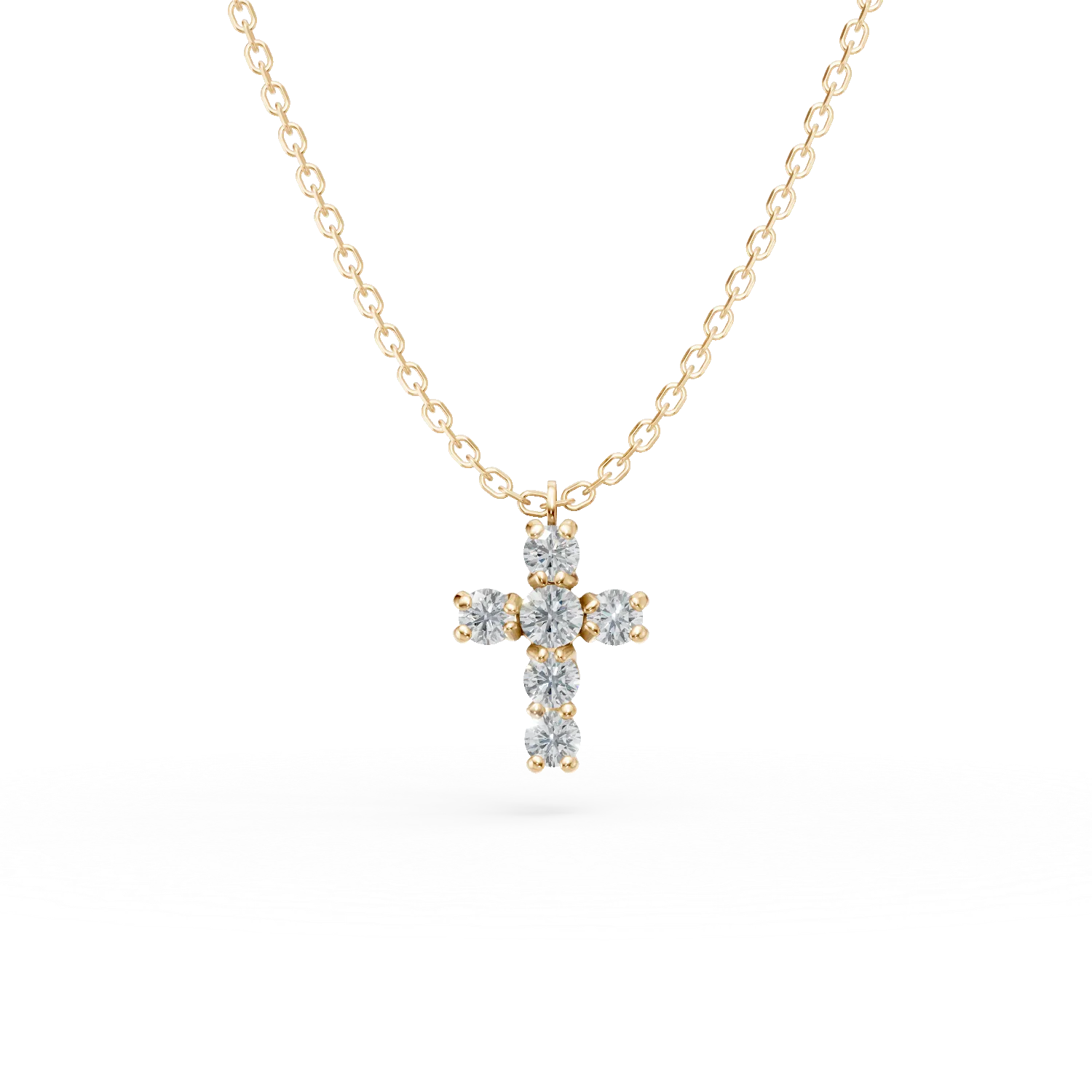 Lant cu pandantiv cruce din aur galben cu diamante de 0.2ct