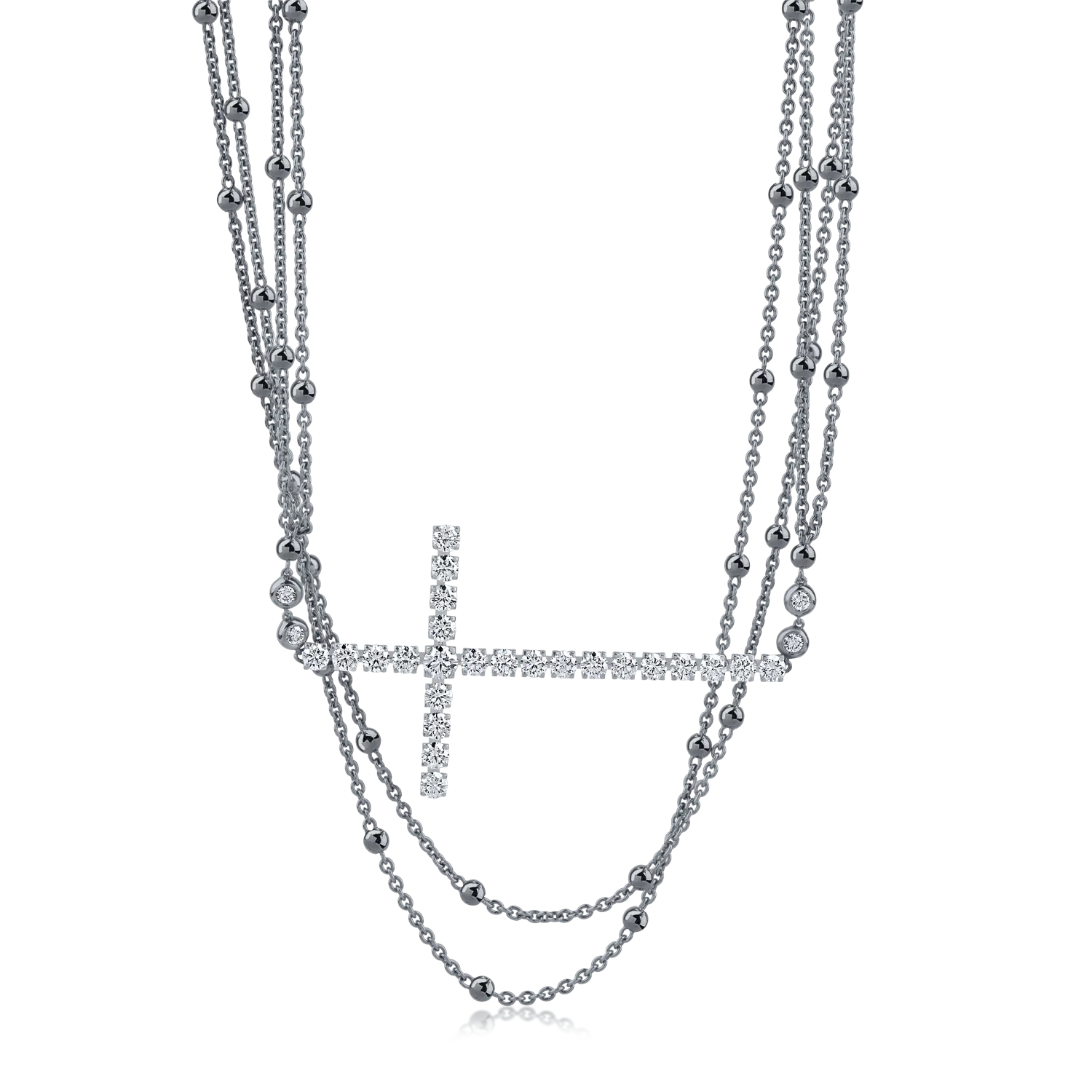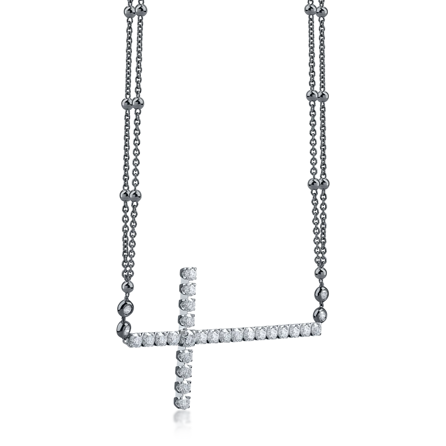 Lant cu pandantiv cruce din aur negru cu diamante de 3.23ct