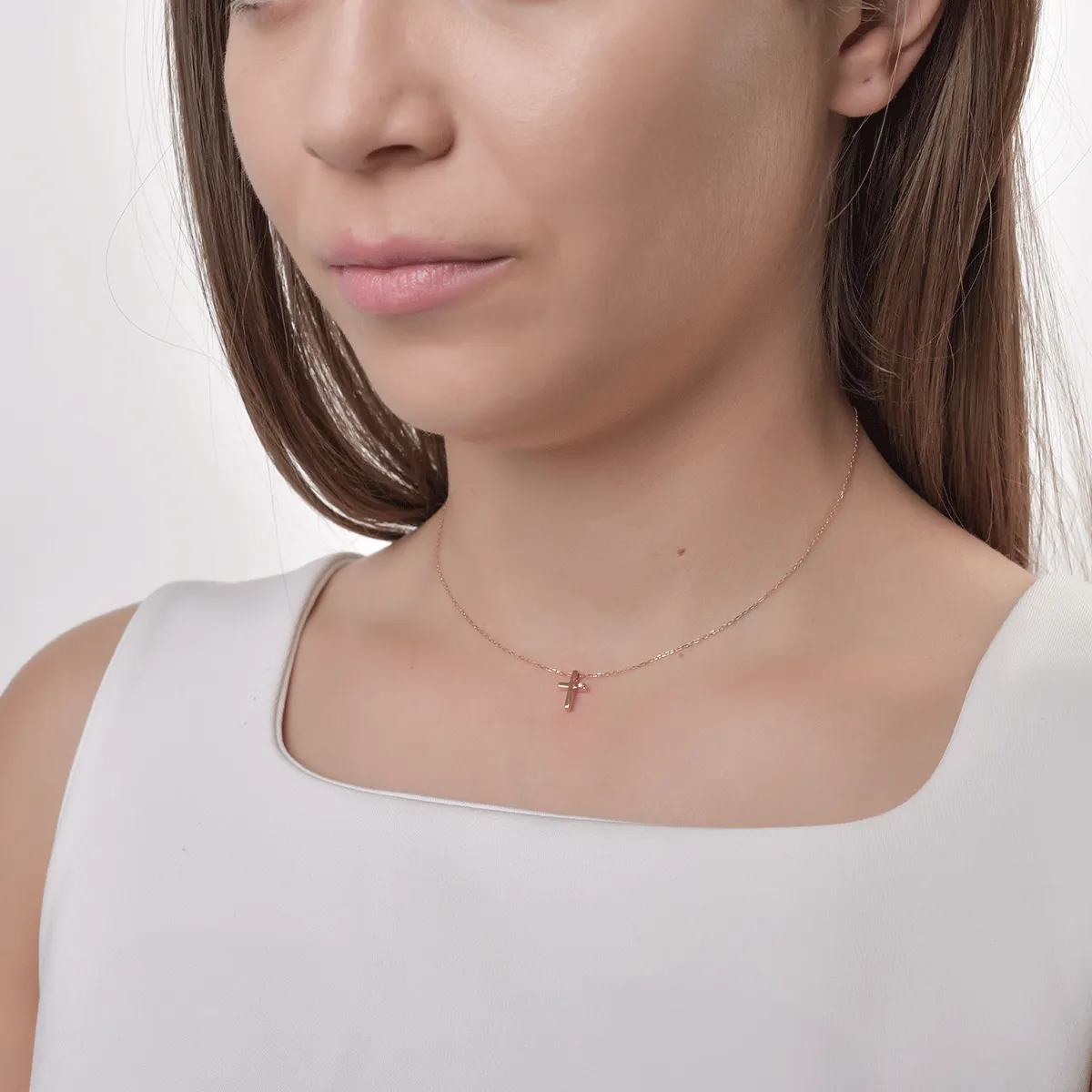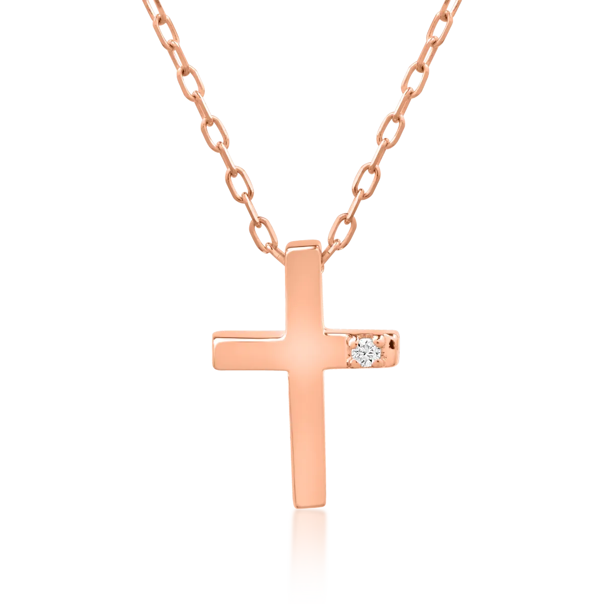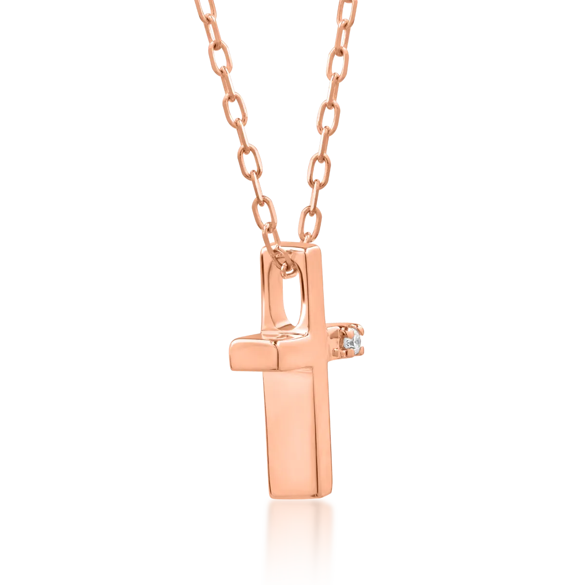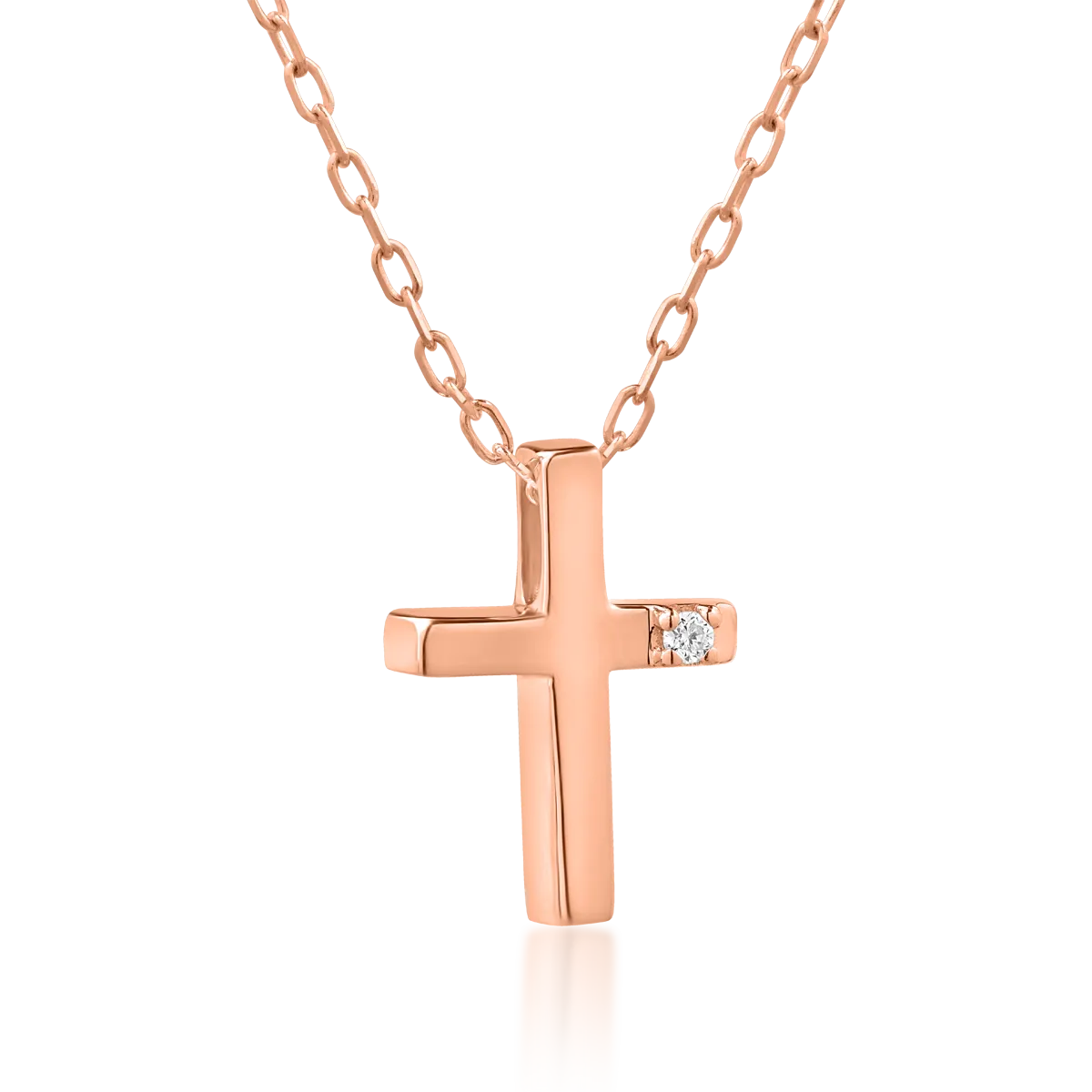 Lant cu pandantiv cruce din aur roz cu diamant de 0.01ct