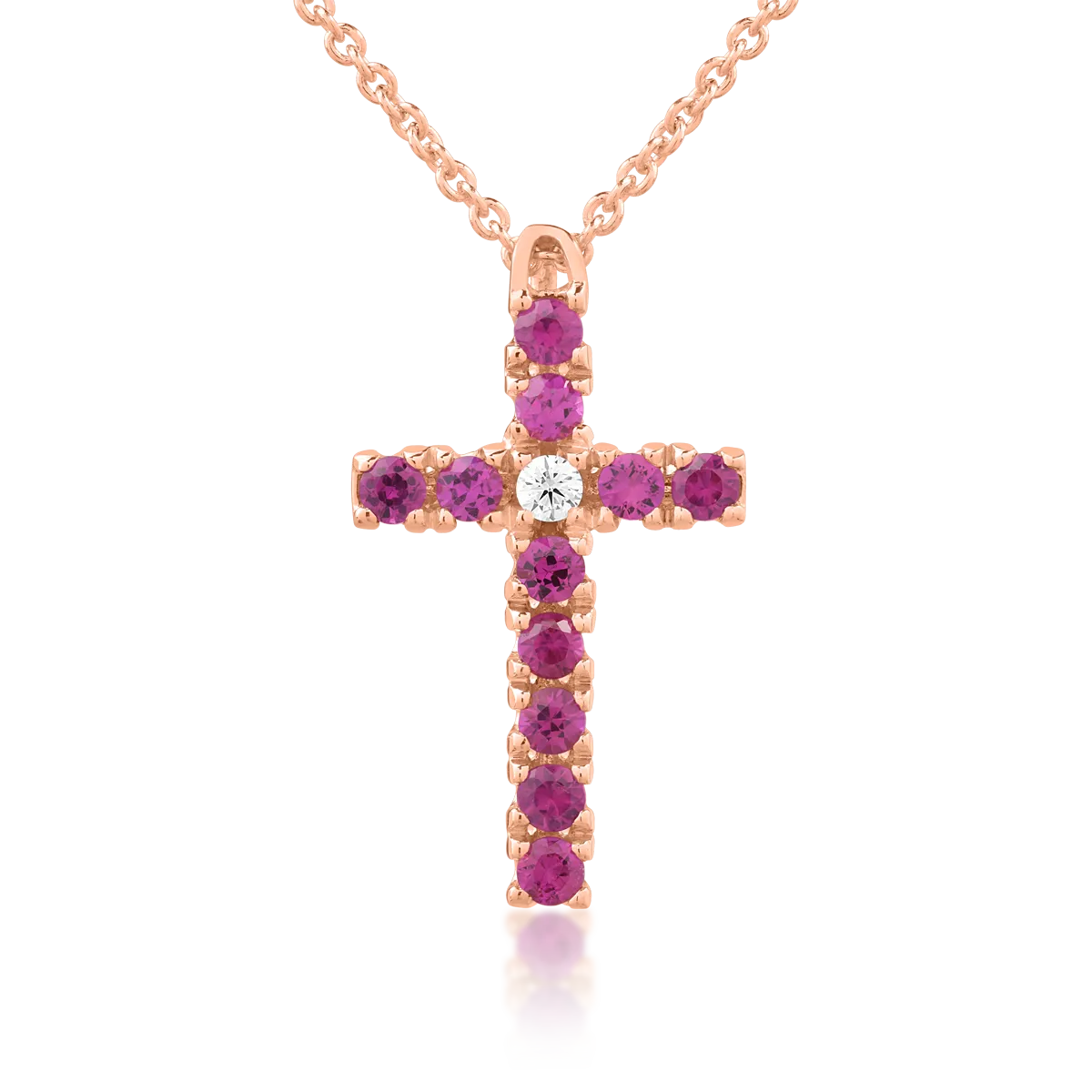 Lant cu pandantiv cruce din aur roz cu diamant de 0.03ct si rubine de 0.4ct
