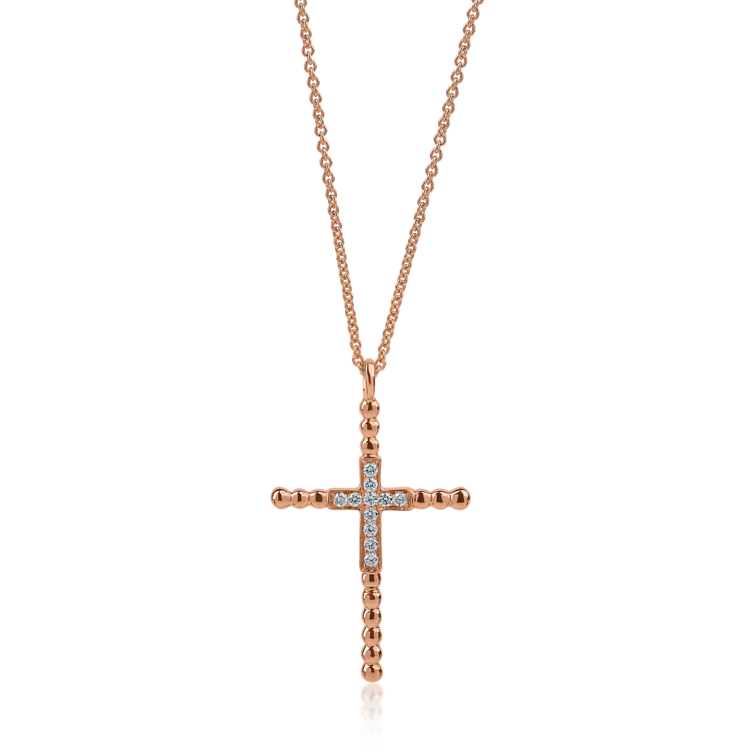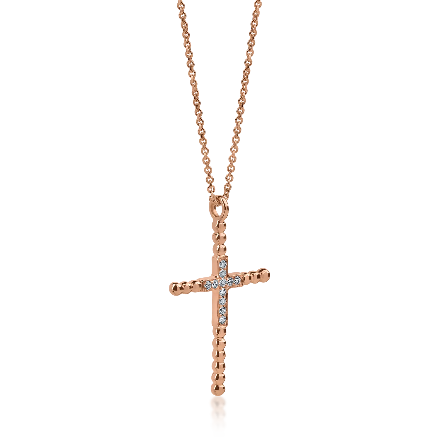 Lant cu pandantiv cruce din aur roz cu diamante de 0.1ct