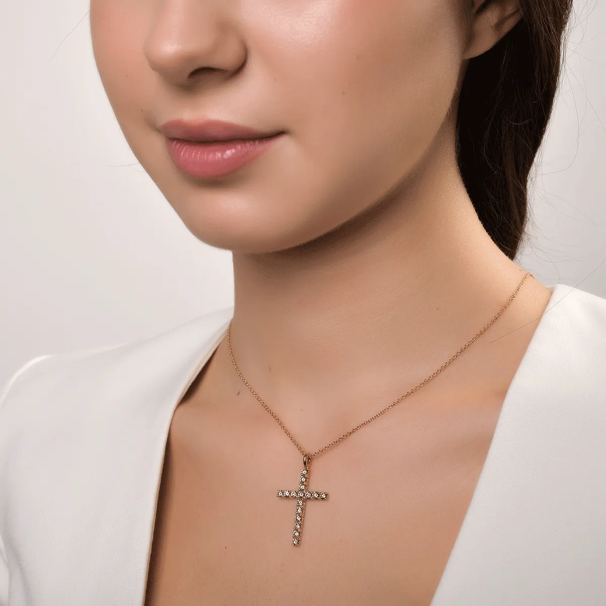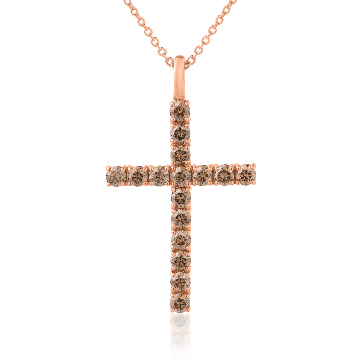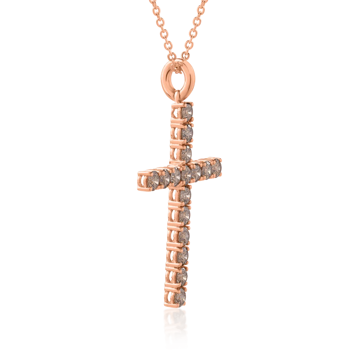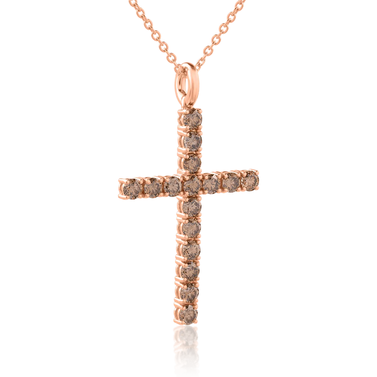 Lant cu pandantiv cruce din aur roz cu diamante maro de 1.35ct