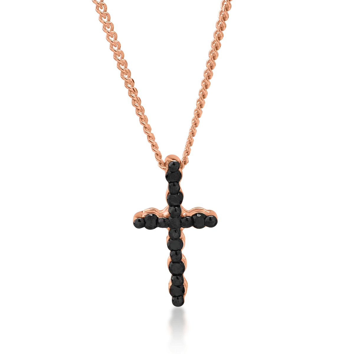 Lant cu pandantiv cruce din aur roz cu diamante negre de 0.06ct