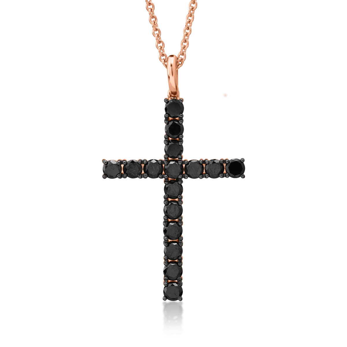 Lant cu pandantiv cruce din aur roz cu diamante negre de 1.45ct