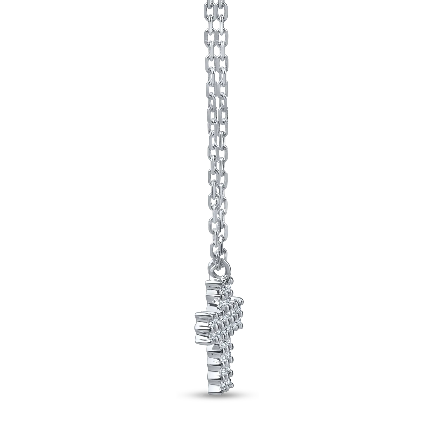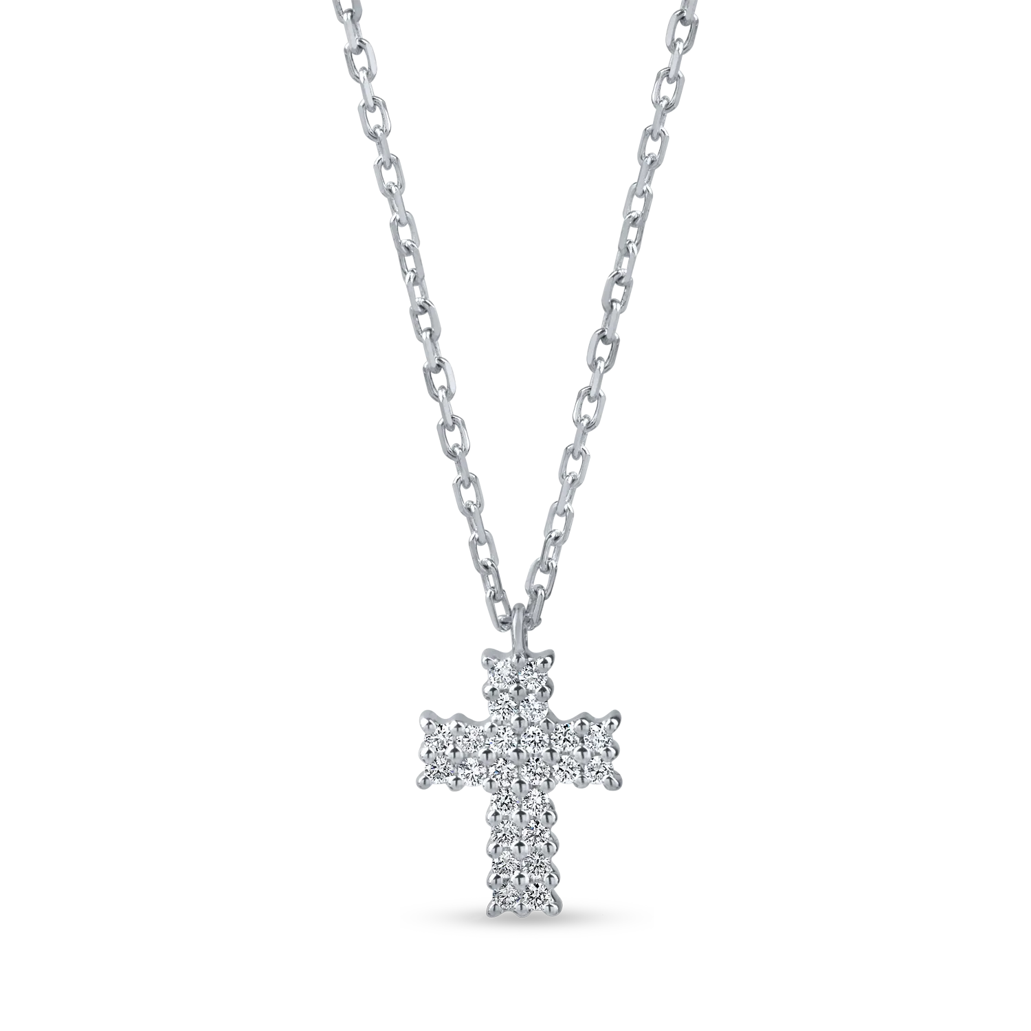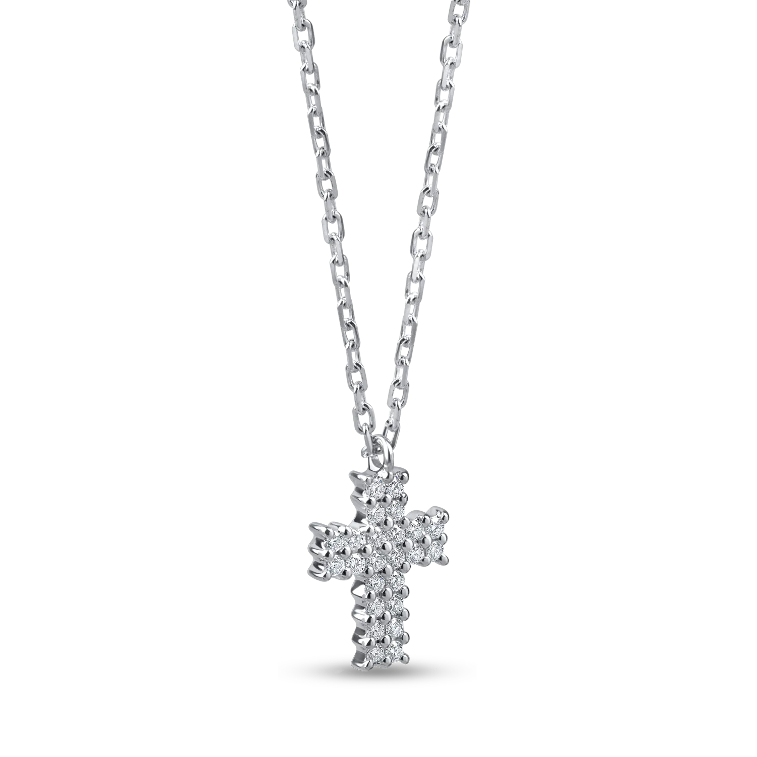 Lant cu pandantiv cruciulita din aur alb cu diamante de 0.2ct