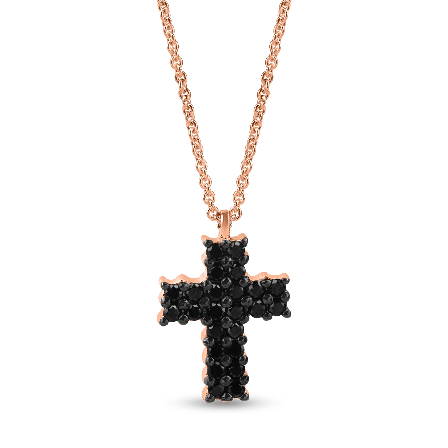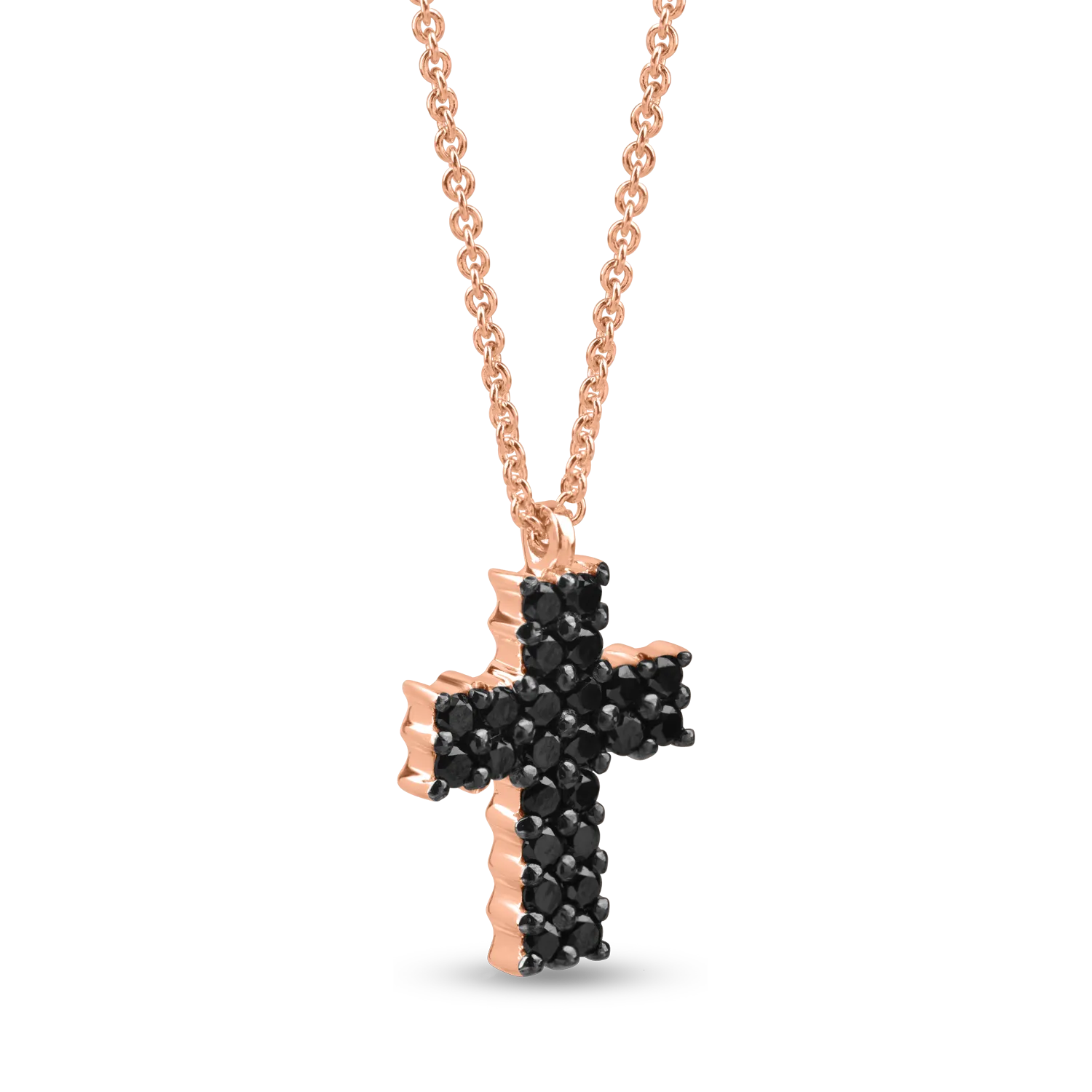 Lant cu pandantiv cruciulita din aur roz cu diamante negre de 0.7ct