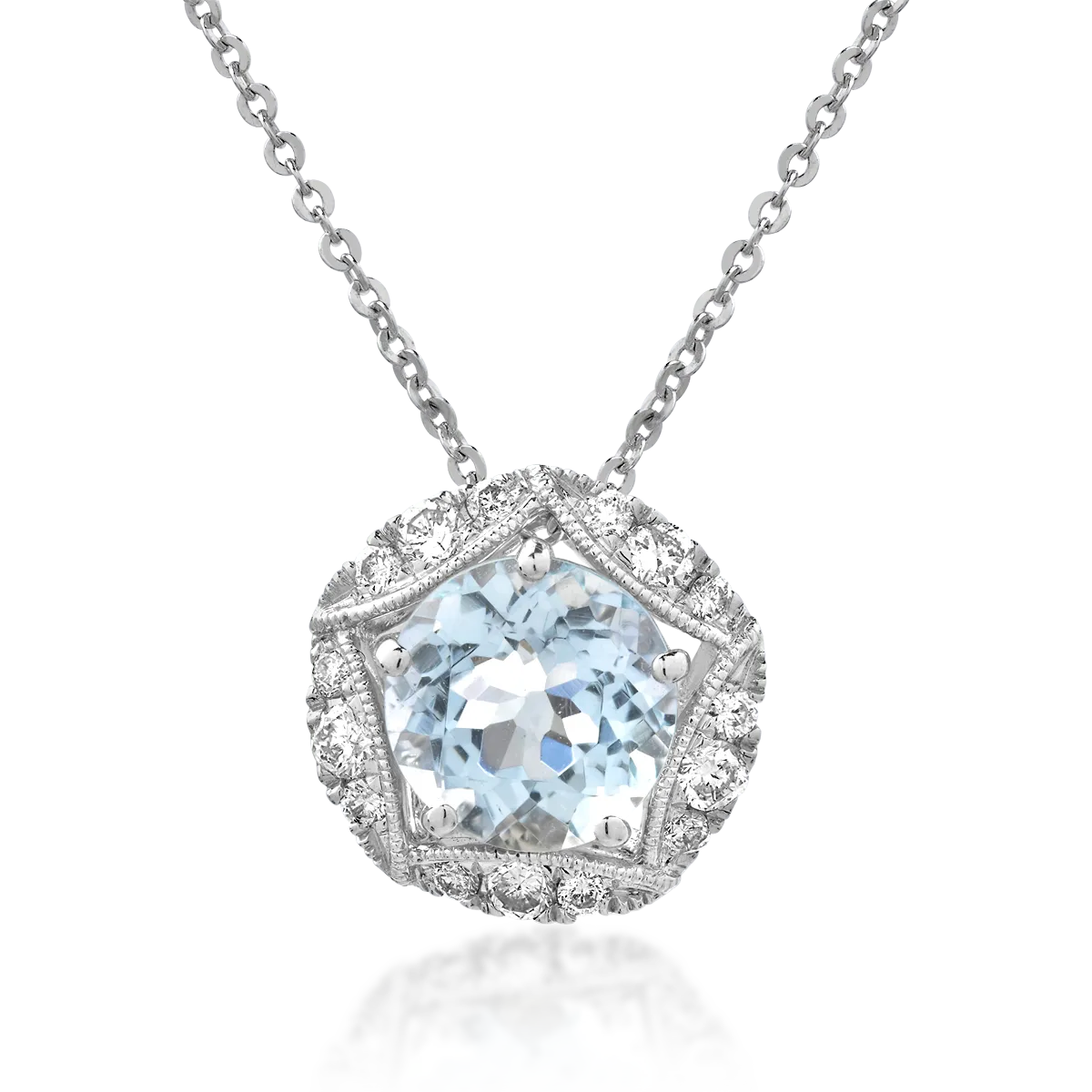 Lant cu pandantiv din aur alb cu acvamarin de 2.1ct si diamante de 0.31ct