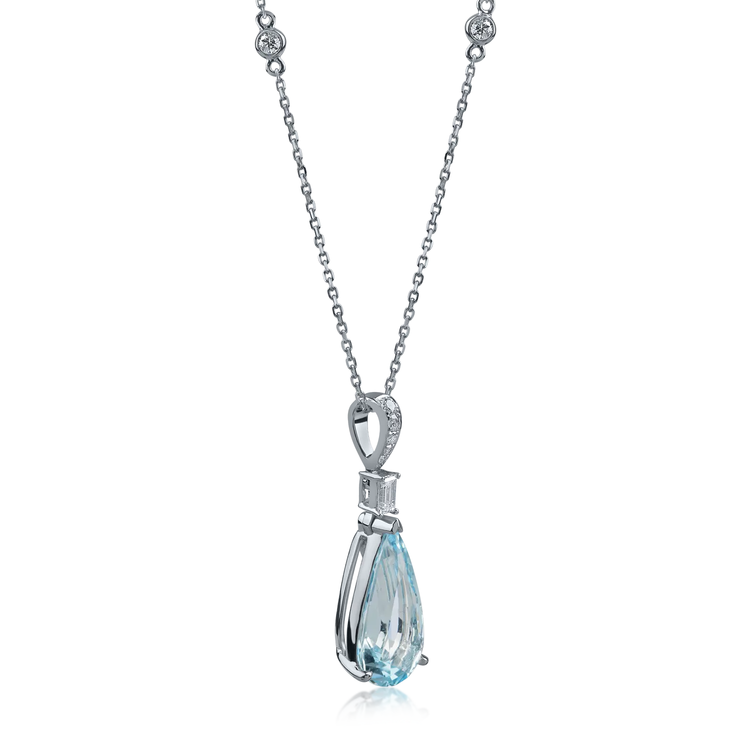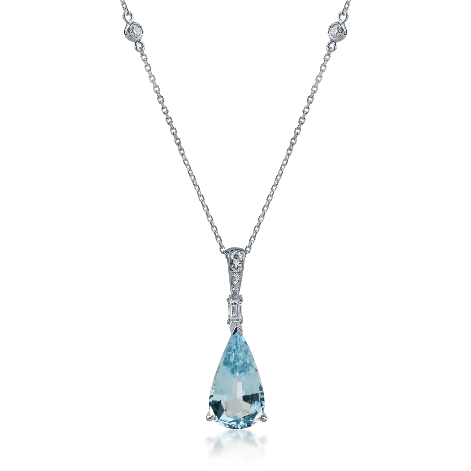Lant cu pandantiv din aur alb cu acvamarin pear de 3.96ct si diamante baguette si rotunde de 0.15ct