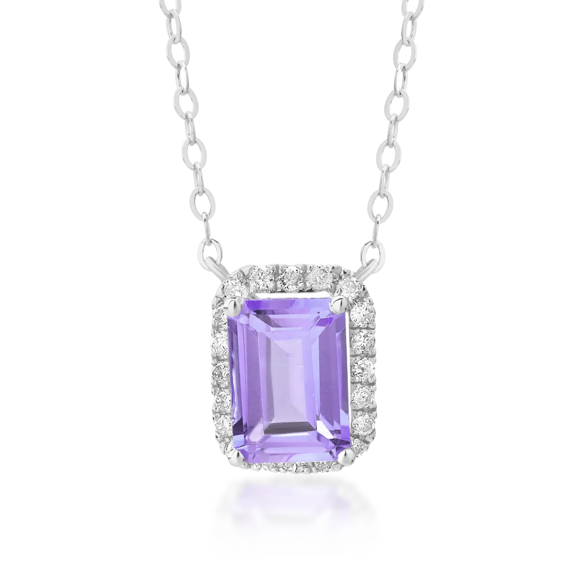 Lant cu pandantiv din aur alb cu ametist emerald de 0.85ct si diamante de 0.12ct