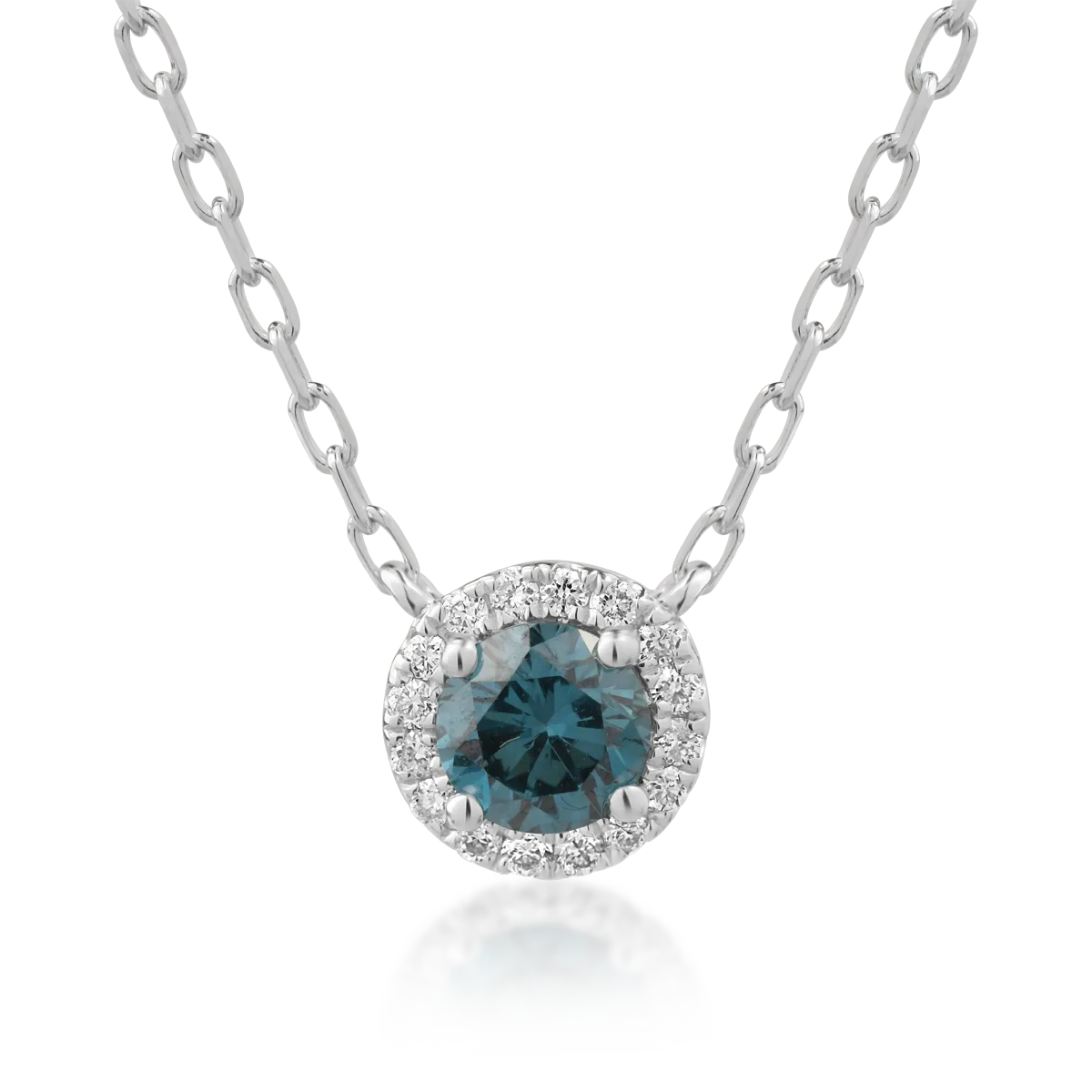 Lant cu pandantiv din aur alb cu diamant albastru de 0.3ct si diamante transparente de 0.06ct
