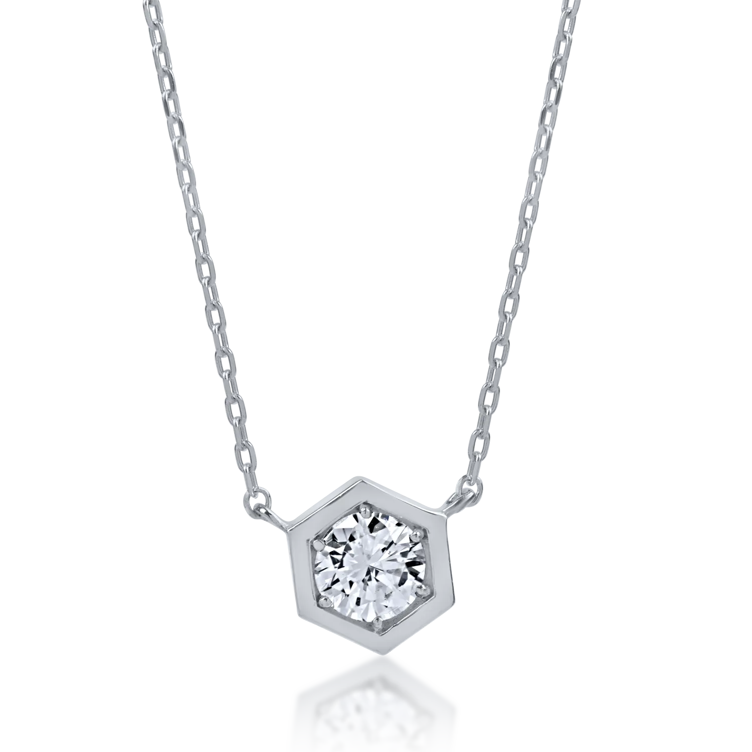 Lant cu pandantiv din aur alb cu diamant de 0.18ct