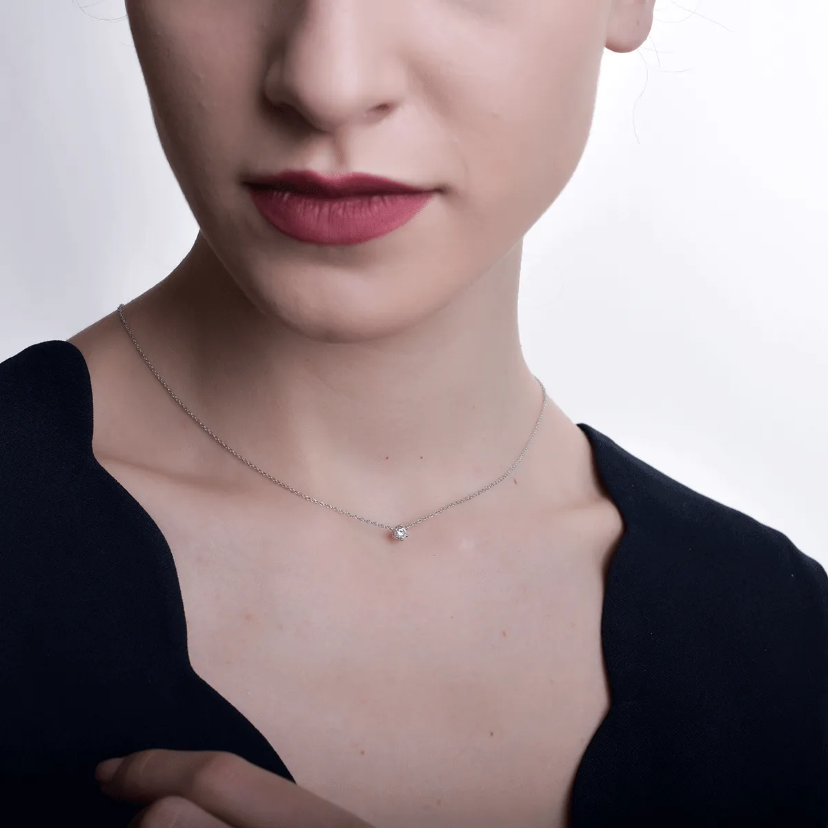 Exploreaza toate fatetele frumusetii. Acest lant cu pandantiv din aur alb cu diamant de 0.19ct poate fi touch-ul final pentru un look fara cusur, ce iti va oferi un plus de incredere in tine. Rafinamentul designului minimalist evidentiaza frumusetea pietrei pretioase, creand o piesa usor de purtat, dar imposibil de trecut cu vederea. O bijuterie care spune povestea elegantei atemporale. Fii de neuitat cu TEILOR!