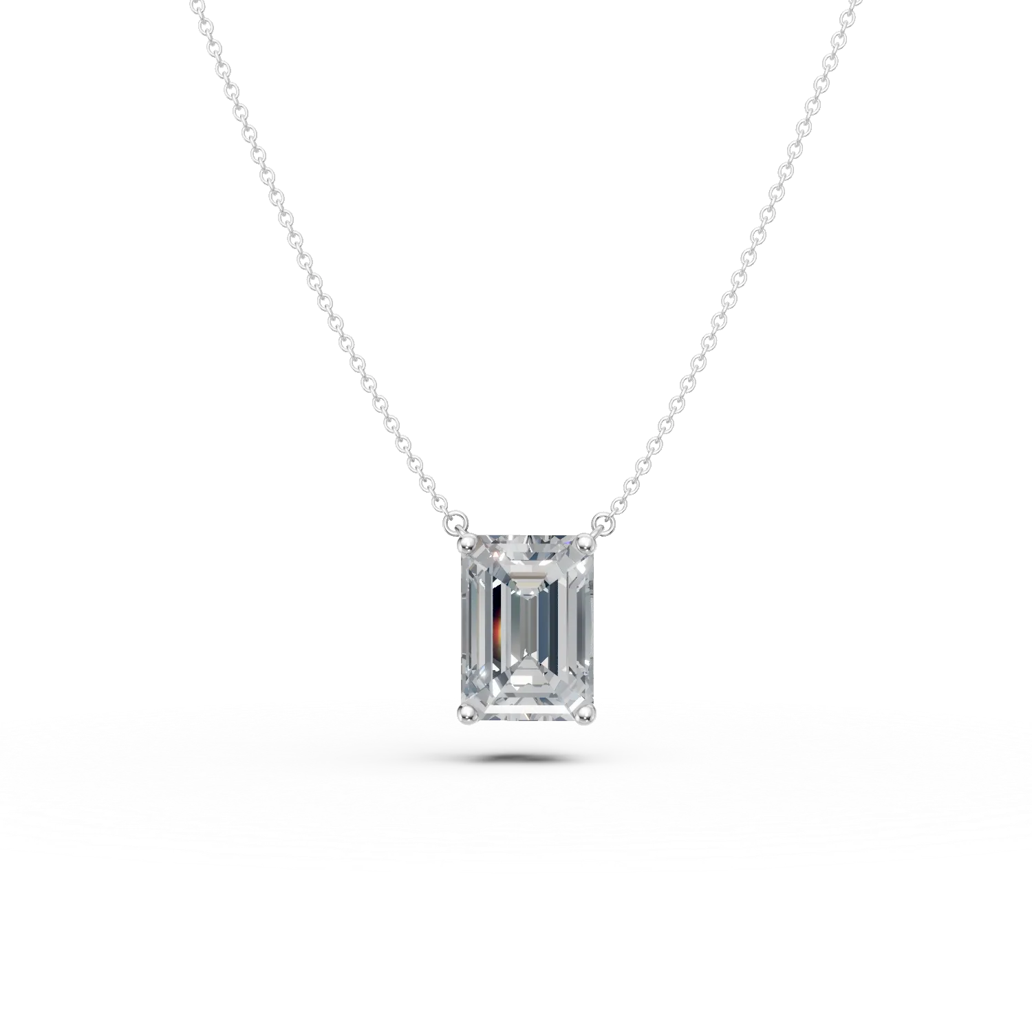 Lant cu pandantiv din aur alb cu diamant emerald solitaire de 1ct creat in laborator