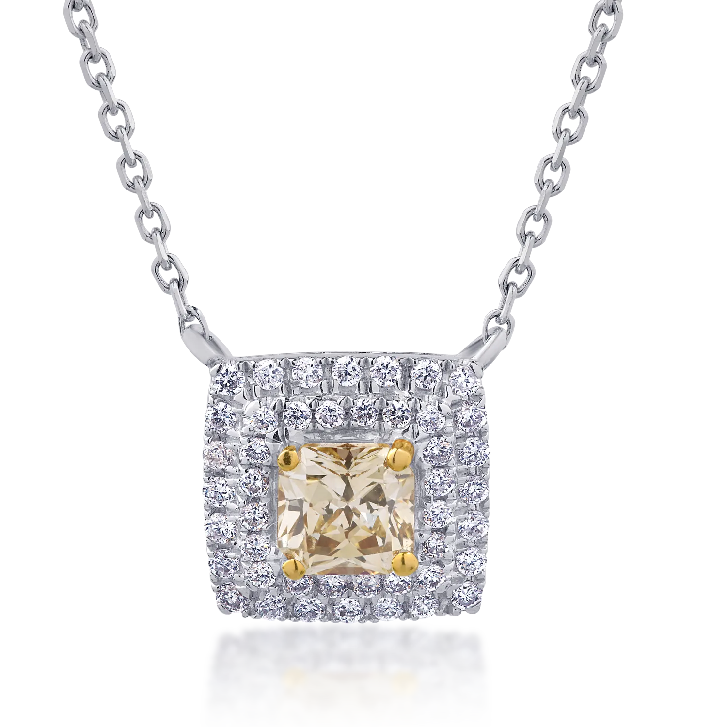 Lant cu pandantiv din aur alb cu diamant fancy-multicolor de 0.53ct si diamante de 0.2ct