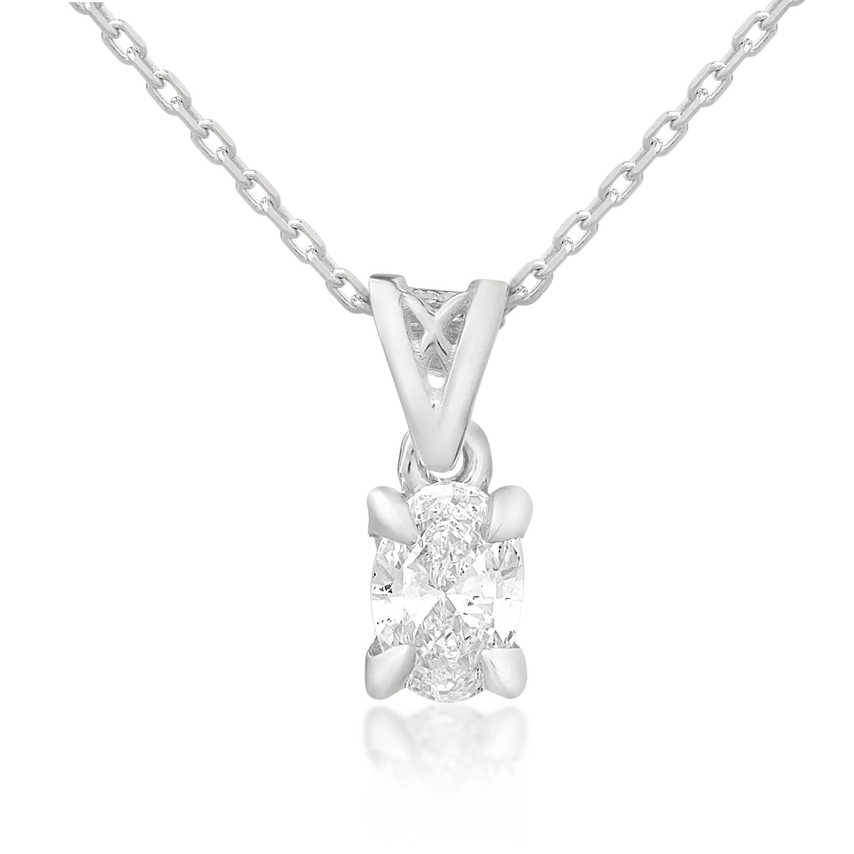 Lant cu pandantiv din aur alb cu diamant oval de 0.4ct
