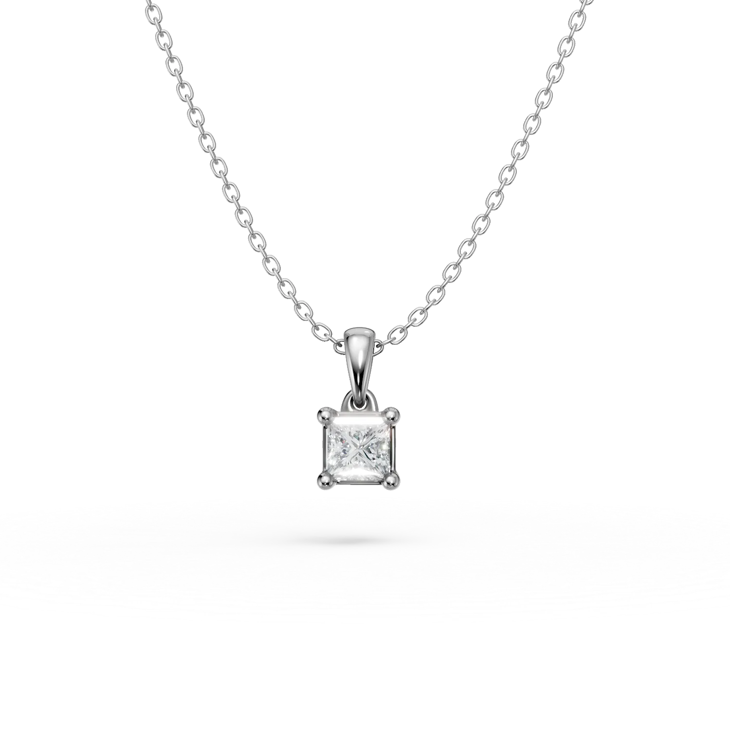 Lant cu pandantiv din aur alb cu diamant princess solitaire de 0.1ct