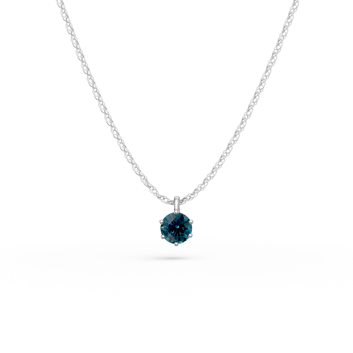 Lant cu pandantiv din aur alb cu diamante albastre de 0.3ct